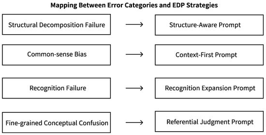 This section introduces the EDP method. We convert the error patterns identified in Section 3.1 into specific instructions designed to fix them. Figure 2 provides a high-level mapping between the four major error categories and their corresponding EDP strategies.