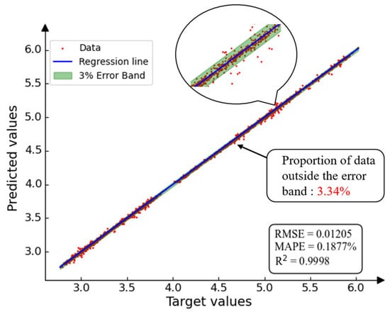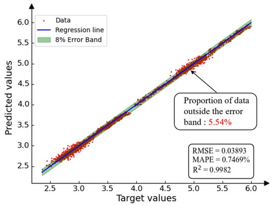 To accurately and effectively evaluate the performance of ANN and BNN in predicting the fatigue life of wind turbines, this section assesses them using three different error metrics: Root Mean Square Error (RMSE), Mean Absolute Percentage Error (MAPE), and the coefficient of determination R2. These metrics measure the model’s accuracy and fit from different perspectives.