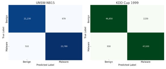 Confusion Matrices of AVSVM on UNSW-NB15 and KDD Cup 1999 Datasets.