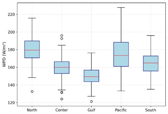 The global demand for renewable energy continues to rise as nations strive to mitigate greenhouse gas emissions and ensure long-term energy security [1,2,3]. In Mexico, wind energy represents one of the most promising renewable sources, contributing more than 13 GW of installed capacity and accounting for over 10% of national electricity generation as of 2024 [4,5]. Its scalability, low operational costs, and consistent generation potential make it a key pillar in the country’s transition toward sustainable energy. Accurate estimation of wind power density (WPD) is therefore crucial for optimal site selection, policy development, and investment planning in wind energy projects. Recent advances in global reanalysis datasets and machine learning techniques have enabled unprecedented improvements in the spatial and temporal characterization of wind resources [2,3].