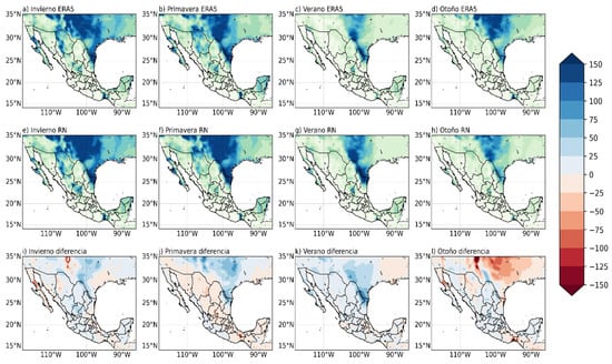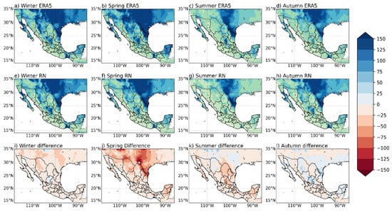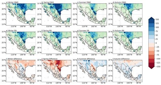 A key strength of this approach lies in its ability to reproduce both spatial and temporal structures of WPD under realistic forecasting conditions. The DNN effectively identified the persistent high-wind corridors in the Isthmus of Tehuantepec, Baja California, and northern Mexico, while also capturing the seasonal shifts associated with large-scale circulation systems such as the trade winds and mid-latitude westerlies [10,14,28]. The model’s low seasonal bias—generally confined within ±5%—highlights its stability and reinforces the reliability of the ERA5 reanalysis datasets as primary training sources.