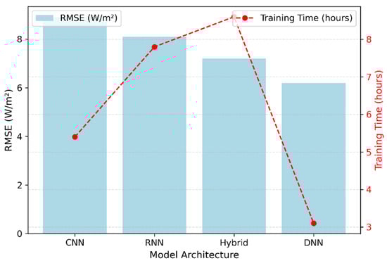 Compared with more complex architectures such as CNNs, RNNs, and hybrid CNN–RNN models, the DNN provided similar accuracy with over 60% shorter training time and 50% lower energy consumption, confirming its computational sustainability and scalability. These advantages make the model suitable for institutions with limited hardware capacity, promoting equitable access to high-quality renewable resource assessment tools.