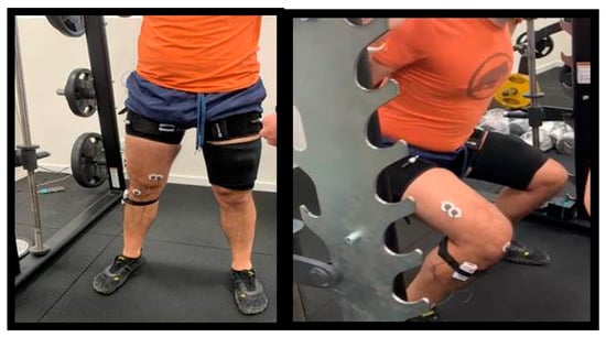 For the BFR condition, pneumatic cuffs were applied to the proximal thighs, and participants performed the squat at 30% of their estimated 1RM. Four sets were completed using a 30–15–15–15 repetition scheme, with 30 s rest between sets, during which the cuffs were deflated and re-inflated immediately prior to the next set [10].