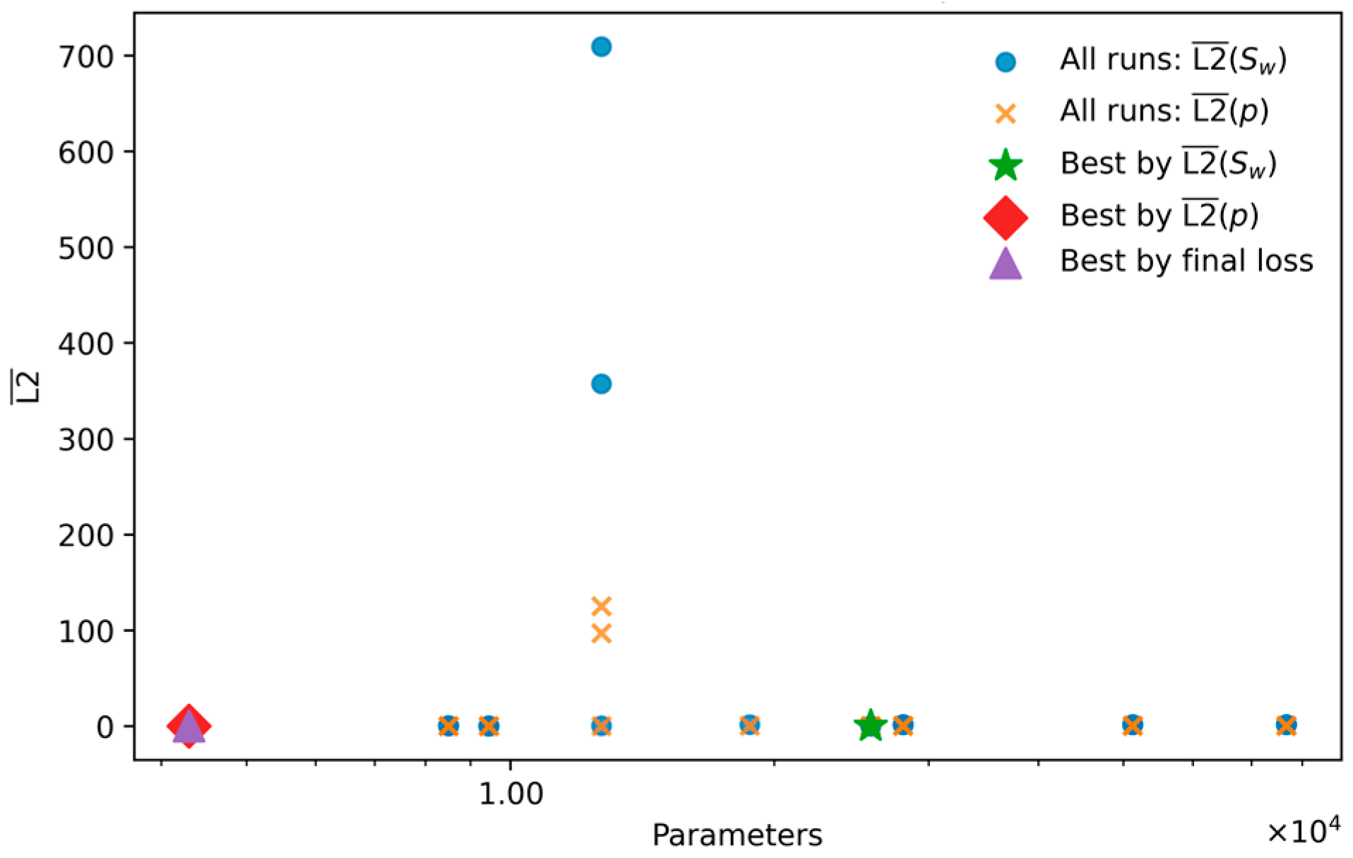 A recurrent theme across all experiments is the asymmetry between fields: pressure is uniformly “easy,” saturation “hard.” The pressure equation is elliptic-like and produces smooth solutions; the saturation equation remains an advection–diffusion conservation law even with capillarity. It is therefore appropriate to select baselines by and treat as a necessary but insufficient condition. The occasional mismatch between the smallest final training loss and the smallest simply underscores the misalignment between a composite residual objective and the task-relevant error. In practice, this counsels toward calibration of residual weights or gradient balancing and toward model selection on a validation rather than on the raw optimizer endpoint.