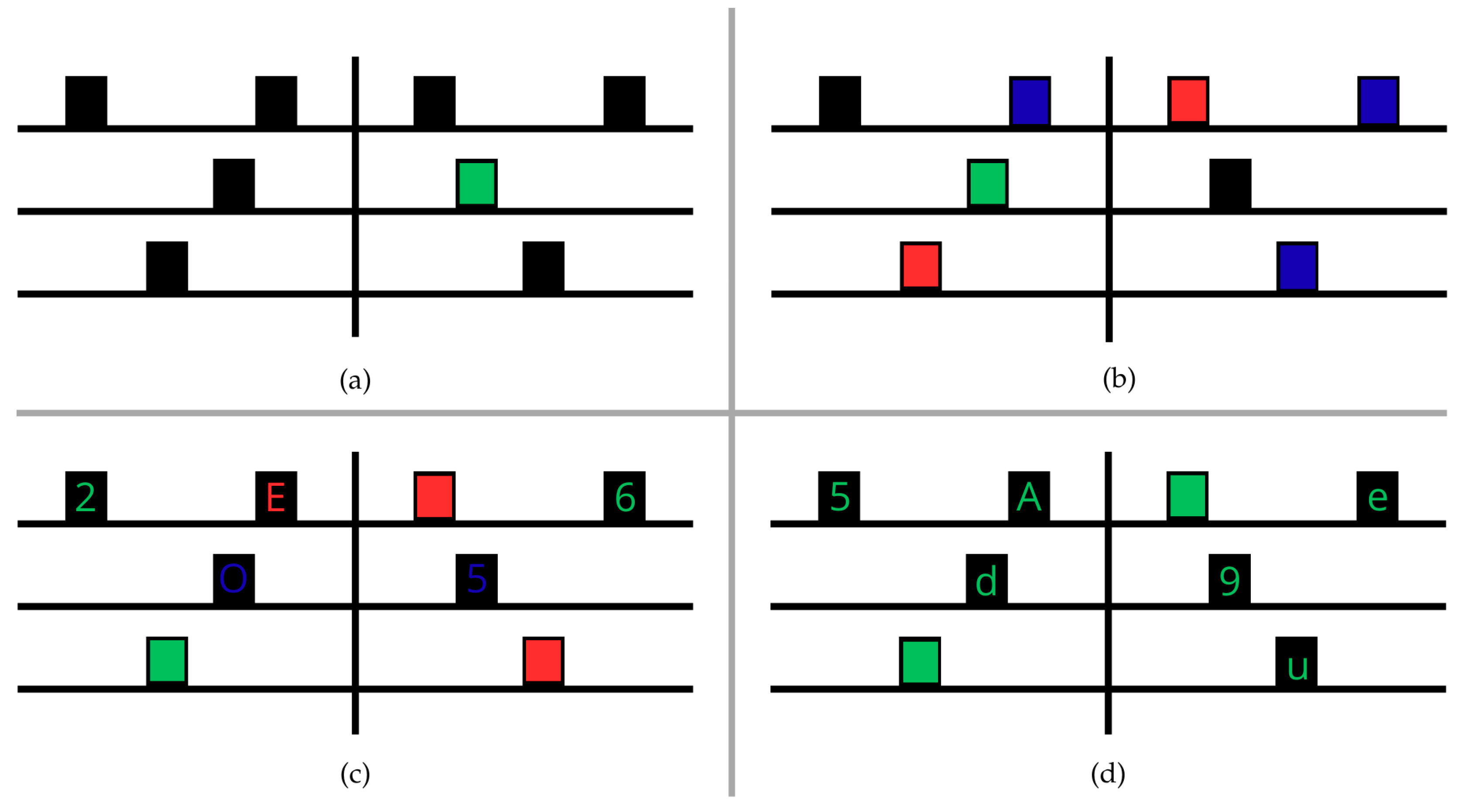 Test 4 (Green “e”): The task for the participant was to react to the green letter “e”. The other semaphores displayed different symbols in the same color.