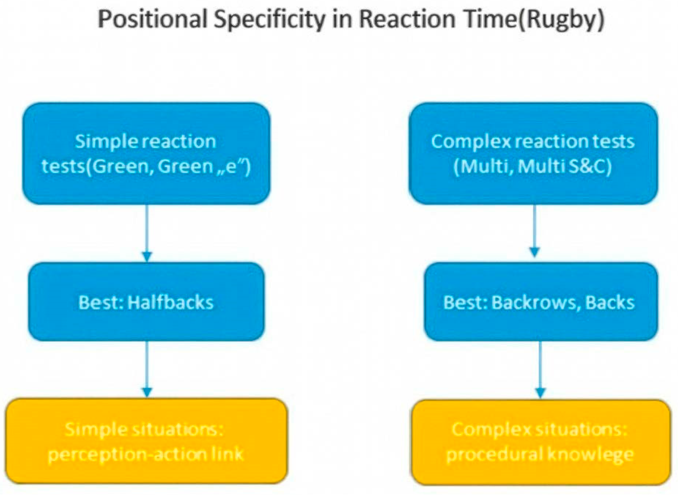 Specific Training Tailored to Player Positions: Based on the results of this study, specific training recommendations can be made. Scrum halves should focus on simple, quick reactions, while back-row forwards and backs require training in complex decision-making situations. Studies by Pojskić et al. confirm that players in agility-demanding sports show faster reaction times in complex motor tasks [