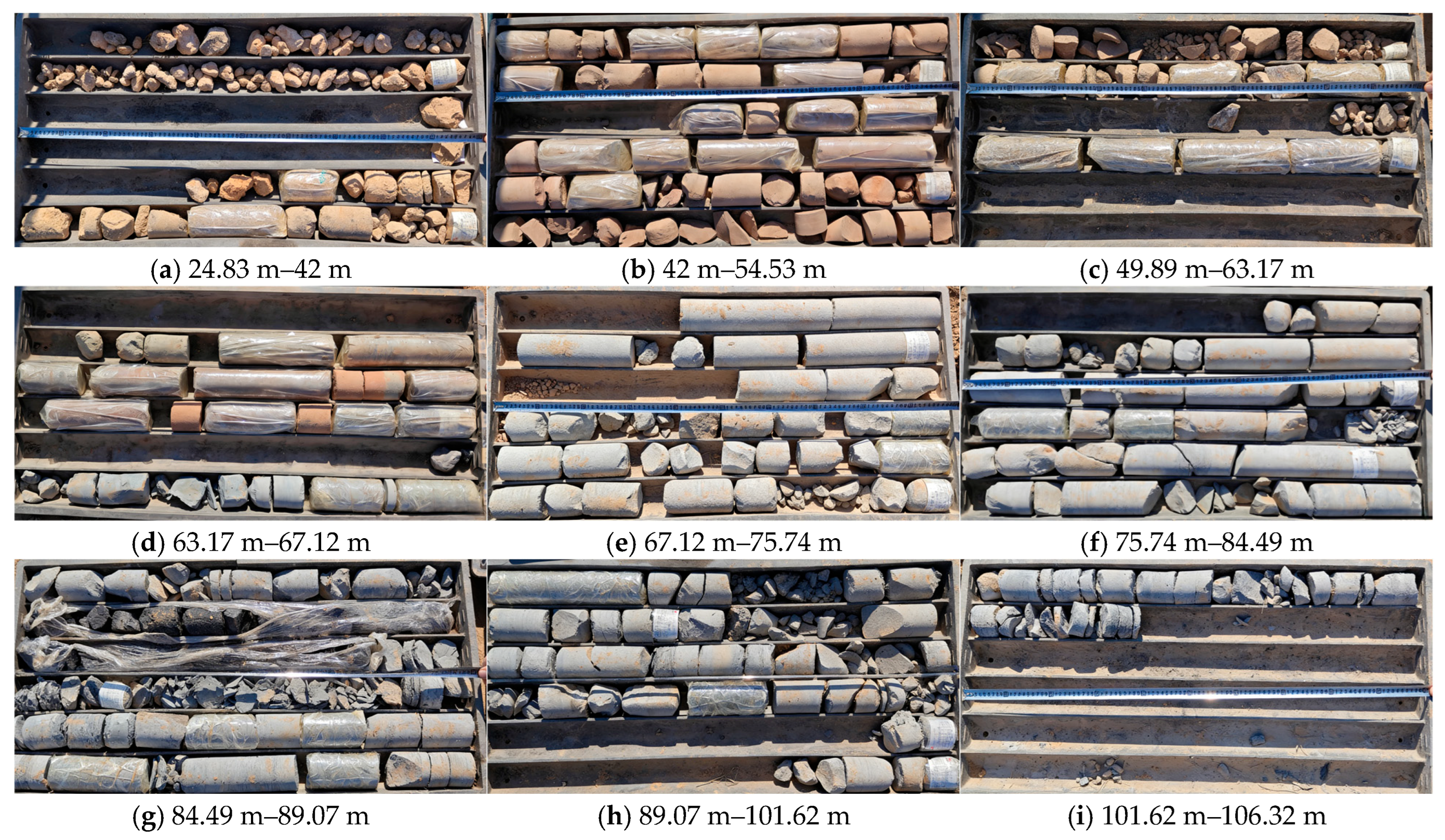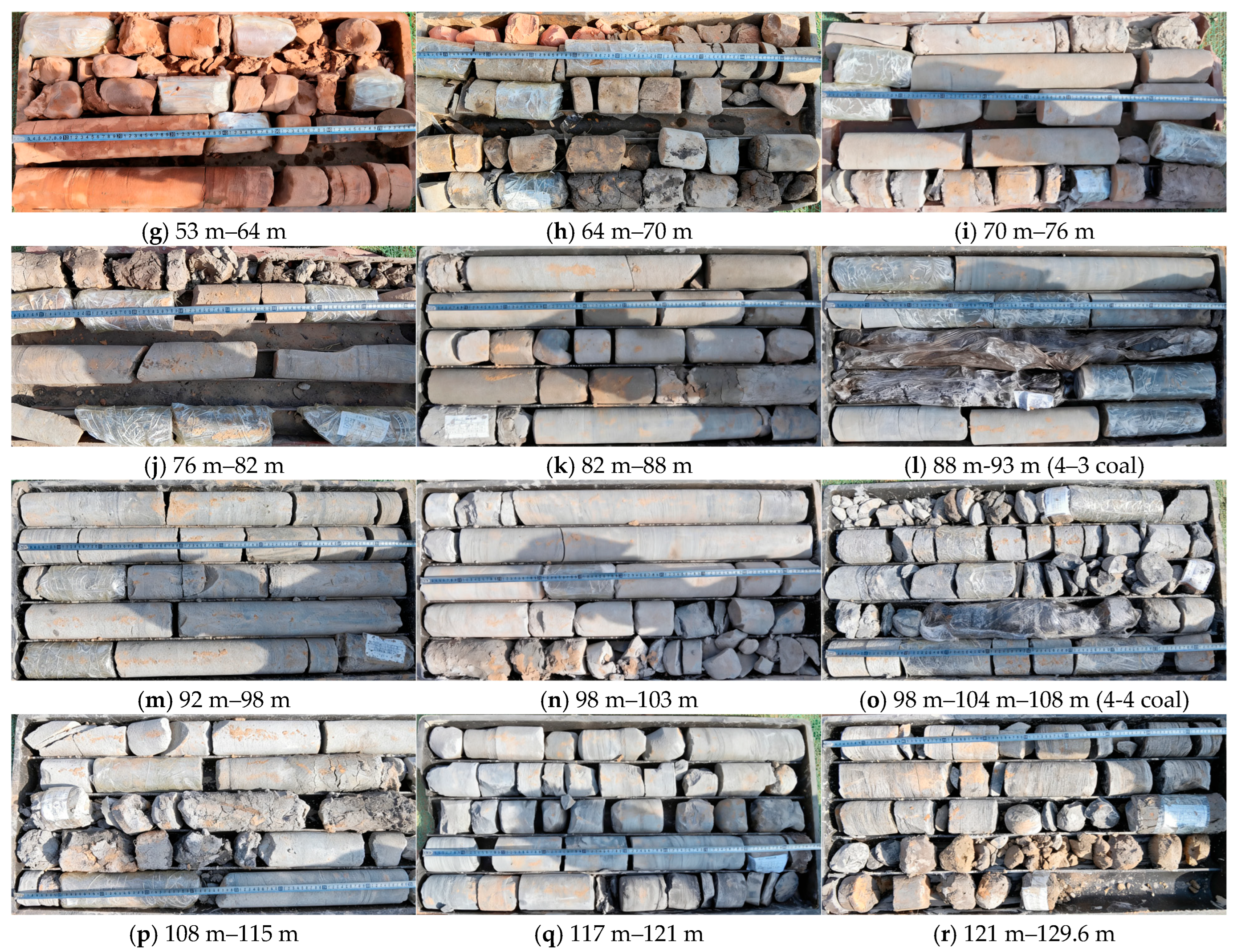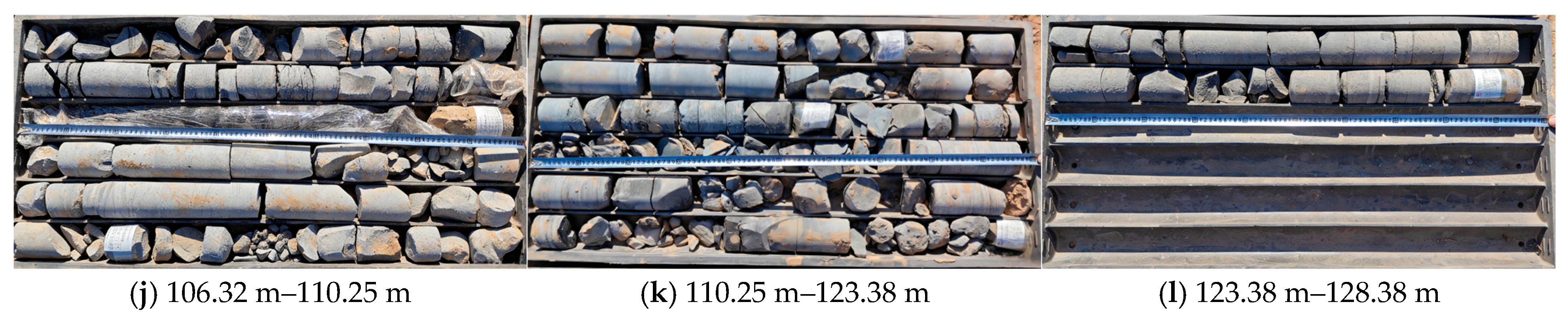 7] reported that the measured fracture–mining ratio under high-intensity mining significantly exceeds empirical formula predictions, with errors attributed to factors like lithology and bedrock thickness. A variety of detection methodologies have been employed, including monitoring drilling fluid leakage [