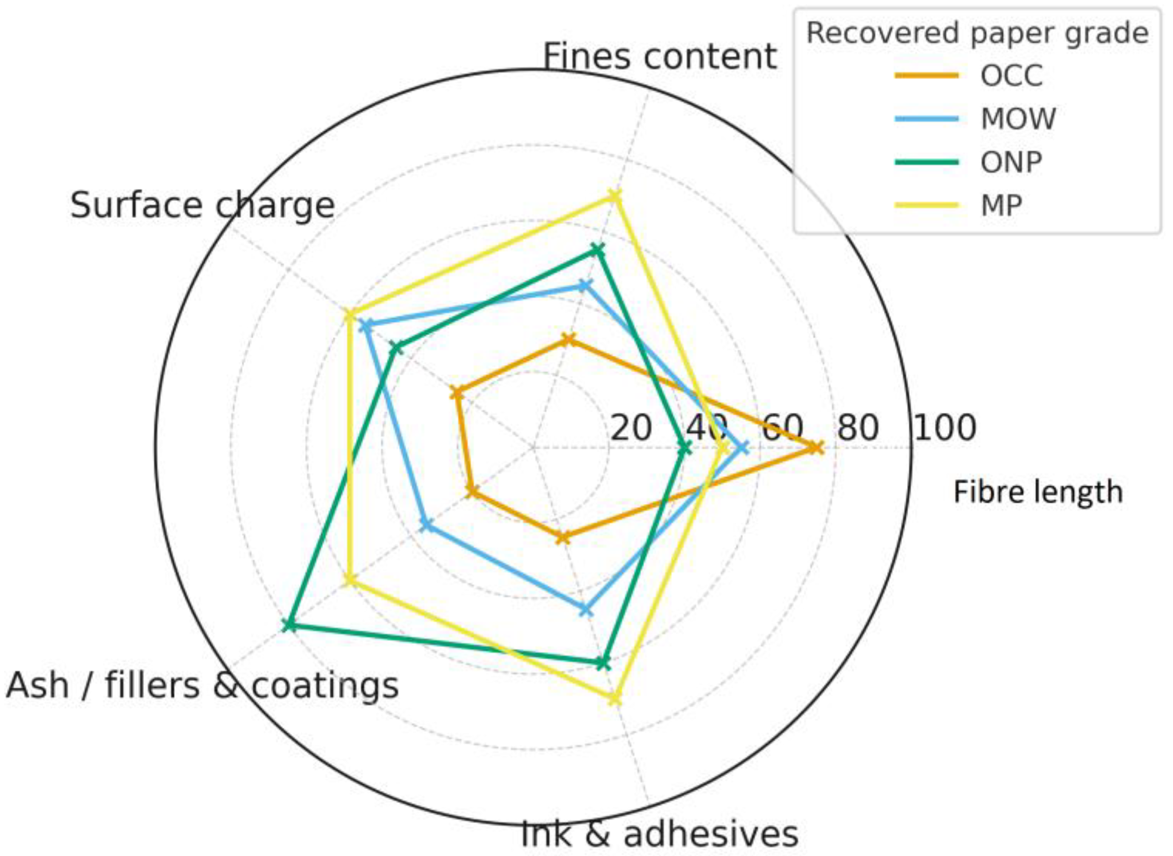 - Higher cationic demand and unstable wet-end chemistry, reflecting the combined effects of increased carboxyls, DCSs, and mineral fines.