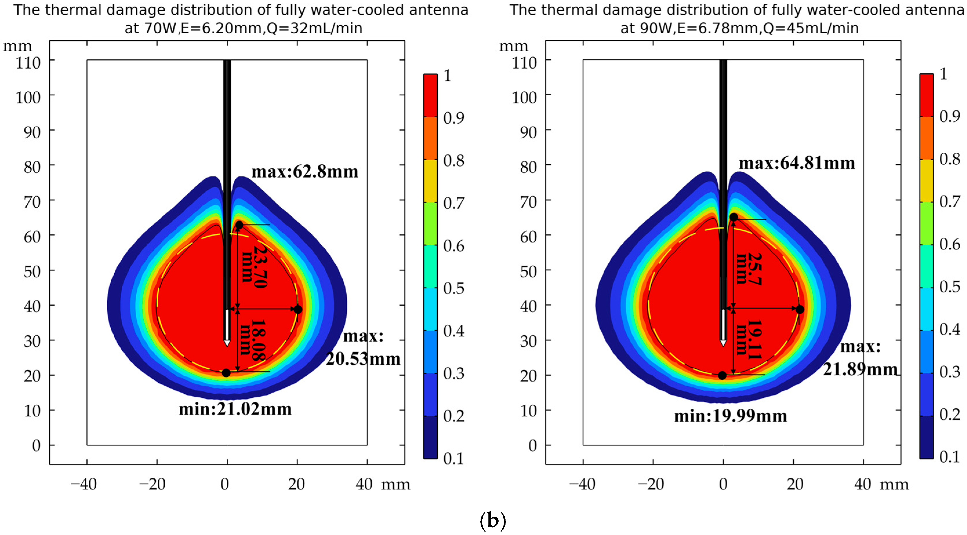 - Lu, Y.; Nan, Q.; Li, L.; Liu, Y. Numerical study on thermal field of microwave ablation with water-cooled antenna. Int. J. Hyperth. 2009, 25, 108–115. [Google Scholar] [CrossRef]