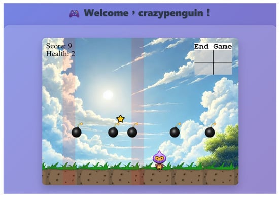 To increase engagement and challenge, GBPLS adopts a “bomb-dodging” mechanic, as shown in Figure 1. Students move a character to avoid falling bombs; collisions reduce life, and the game ends when life reaches zero, at which point a score is recorded. Contact with a star triggers a programming question generated by the AI according to instructor prompts (Figure 2). Students must answer correctly to earn points and continue; incorrect answers incur penalties. Over time, the question difficulty increases and bombs fall faster. This design heightens excitement while prompting repeated practice and consolidation of concepts.