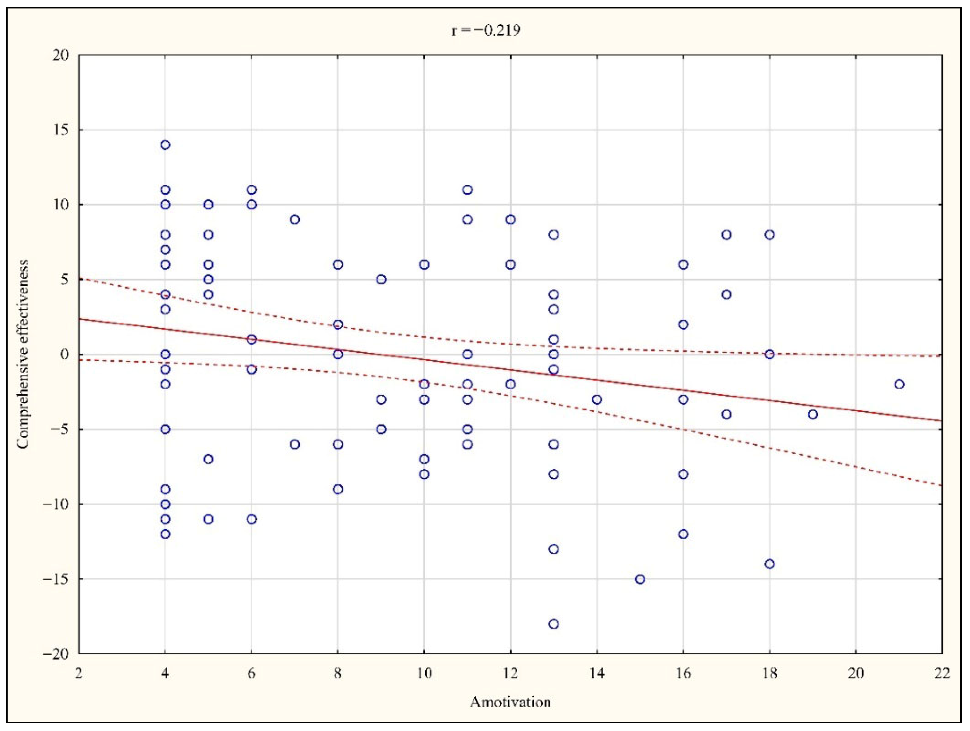 | Amotivation | −0.242 | 0.103 | −0.219 | 0.093 | −2.355 | 0.021 |