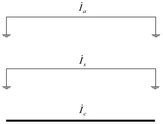 To calculate the induced current in the cable armor when both ends are grounded, an equivalent circuit is established, as illustrated in Figure 3. In this circuit, the variables İa, İs and İc represent the current values flowing through the armor, metal sheath, and cable core, respectively.