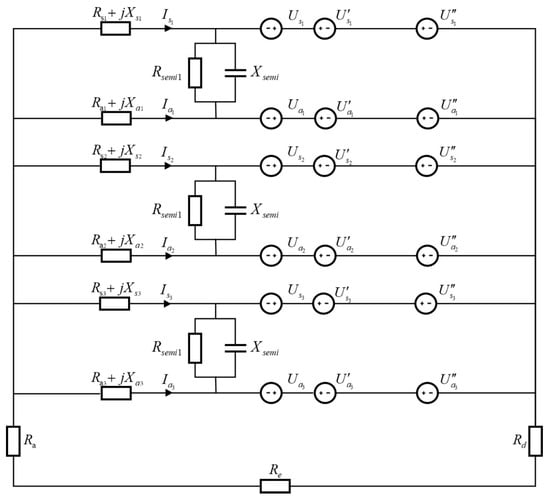 Equivalent circuit of the segmented solid bonding grounding mode.