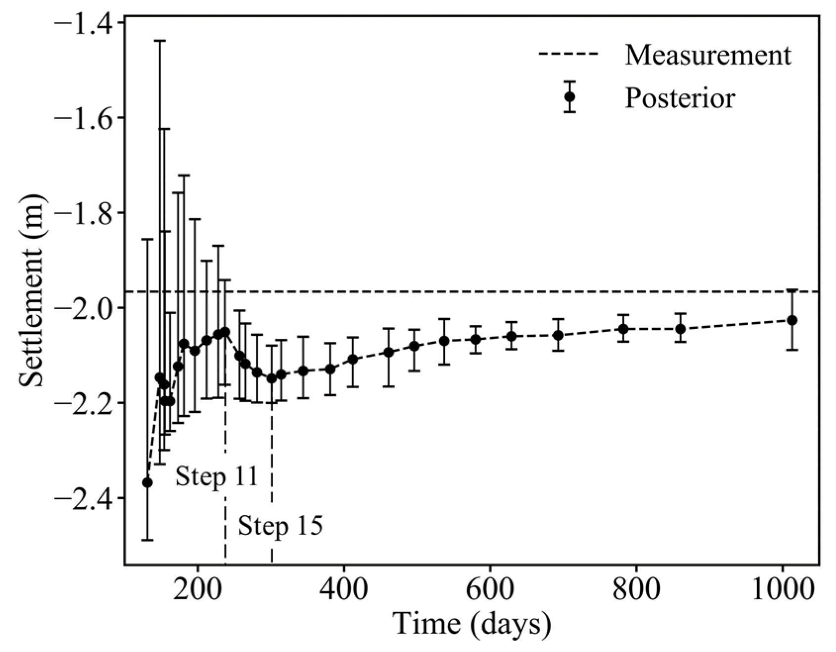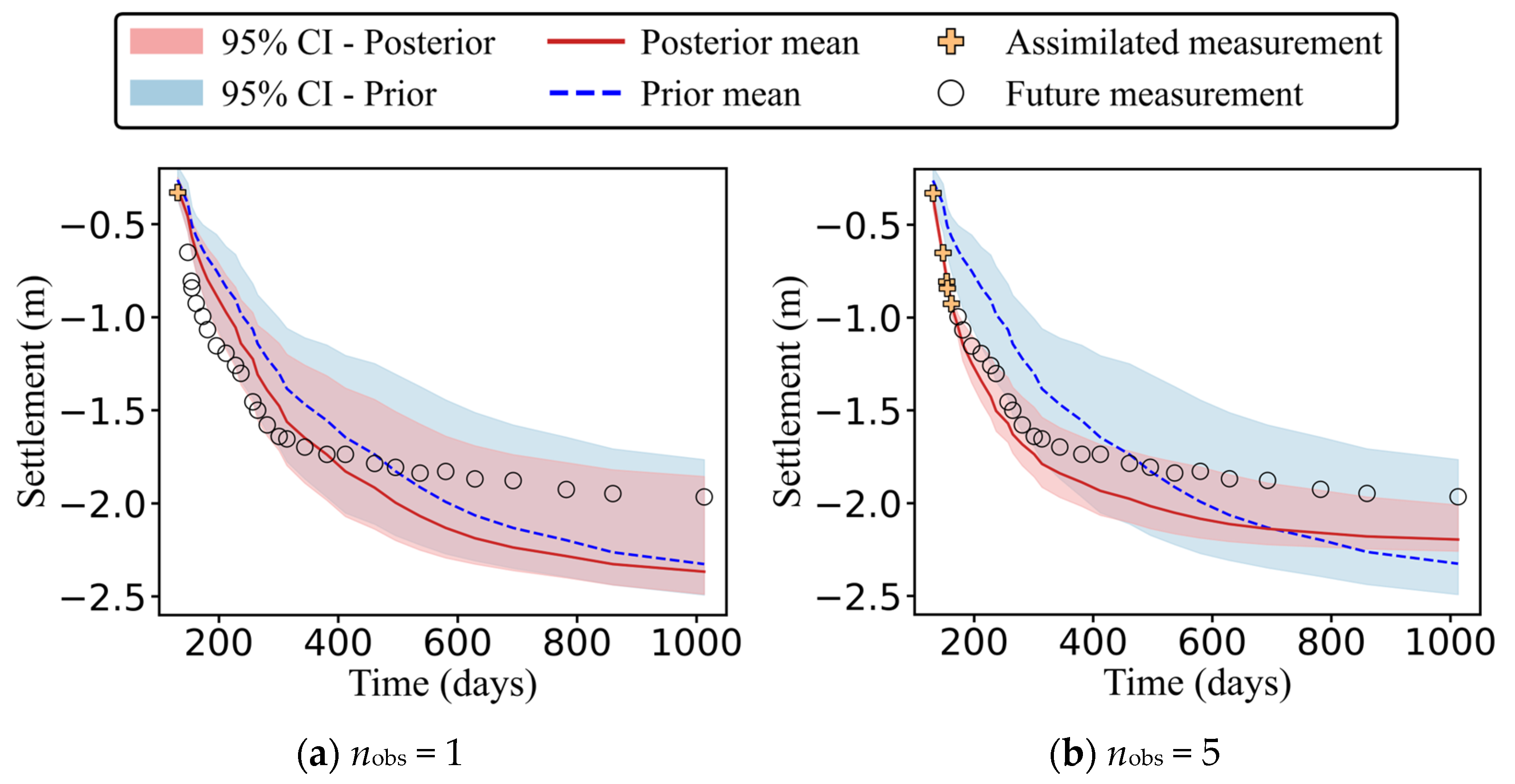 - Kelly, R.; Huang, J. Bayesian updating for one-dimensional consolidation measurements. Can. Geotech. J. 2015, 52, 1318–1330. [Google Scholar] [CrossRef]