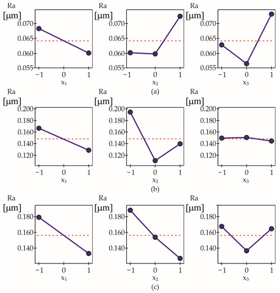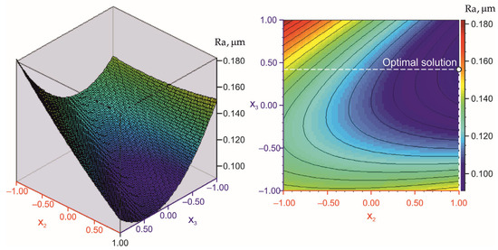 The polynomial coefficients of the developed roughness models are presented in Table 7. The coefficient is omitted because the diamond insert radius was varied at only two levels, which, by definition, has a linear effect on surface roughness. The model-predicted values of the Ra roughness parameter at the experimental points are listed in Table 5. The results obtained from the model were relatively consistent with the experimental data.
