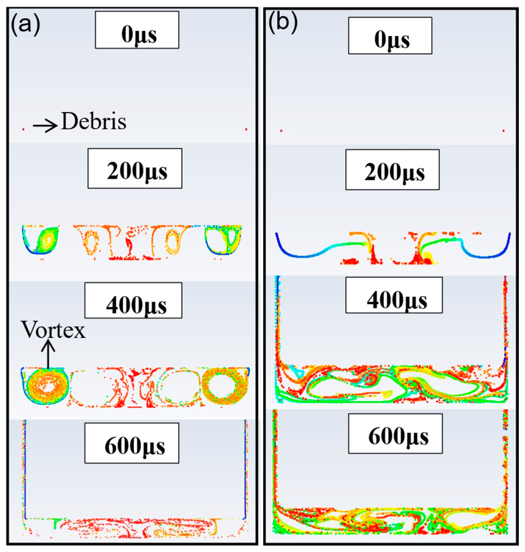 - Wang, J.; Han, F.Z. Simulation model of debris and bubble movement in electrode jump of electrical discharge machining. Int. J. Adv. Manuf. Technol. 2014, 74, 591–598. [Google Scholar] [CrossRef]