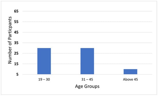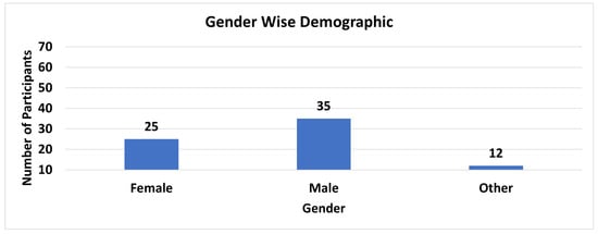 The prolific crowd-source-based platform was used to recruit test participants [43]. A total of 70 test participants participated in the study. The demographic data is shown below in Figure 10. The age distribution is mentioned in Figure 11, and Figure 12 provides gender-specific information. Participants were selected to represent typical end-users of adaptive video streaming services. It is challenging to collect data through crowd-sourced platforms. The data should be checked for validity and consistency. We included multiple data-quality controls, which included attention checks, minimum viewing times, and response-time screening. The test participants were required to respond within 35 min. If they fail to respond within the stipulated time, the record is discarded. The Pearson correlation was used to include the significant results. The Pearson correlation coefficient was 0.75. The significant test participants selected were 25 in total. We used methods in ITU-R recommendation BT.500-13 [44] to include and exclude test scores. Inconsistent or suspicious responses were identified and excluded. These measures ensured that only high-quality, reliable data were used in the analysis. Prior to the experiment, participants were informed of the study procedure and provided written consent in accordance with ethical guidelines. No specialized knowledge of video coding or streaming was required, ensuring that the ratings reflected the perception of general viewers rather than domain experts.