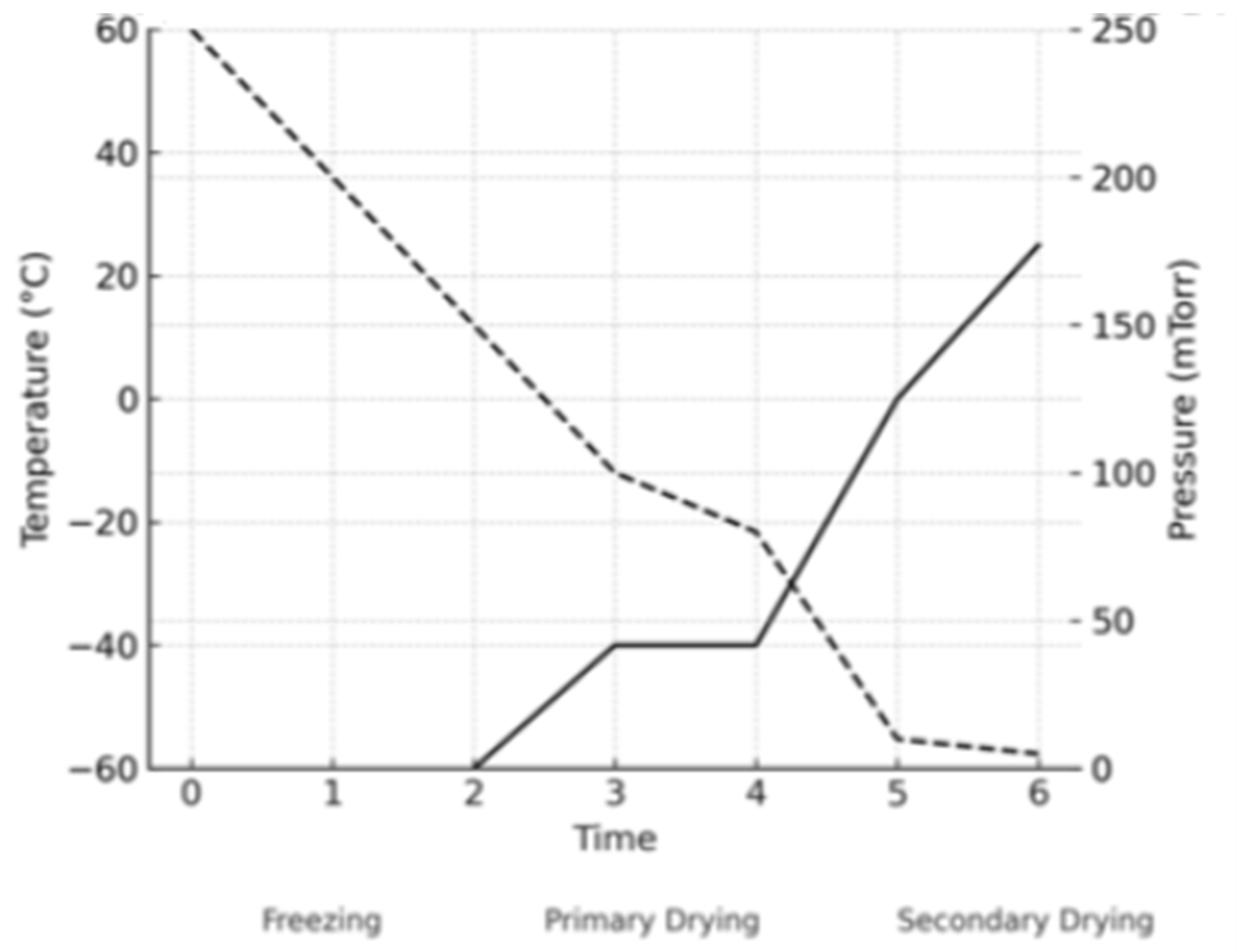 | Glass Transition Temperature (Tg) Concerns | Low Tg due to sugar content can lead to stickiness and agglomeration during drying | Collapse risk if the product temperature exceeds Tg or ice melting onset temperature during drying |