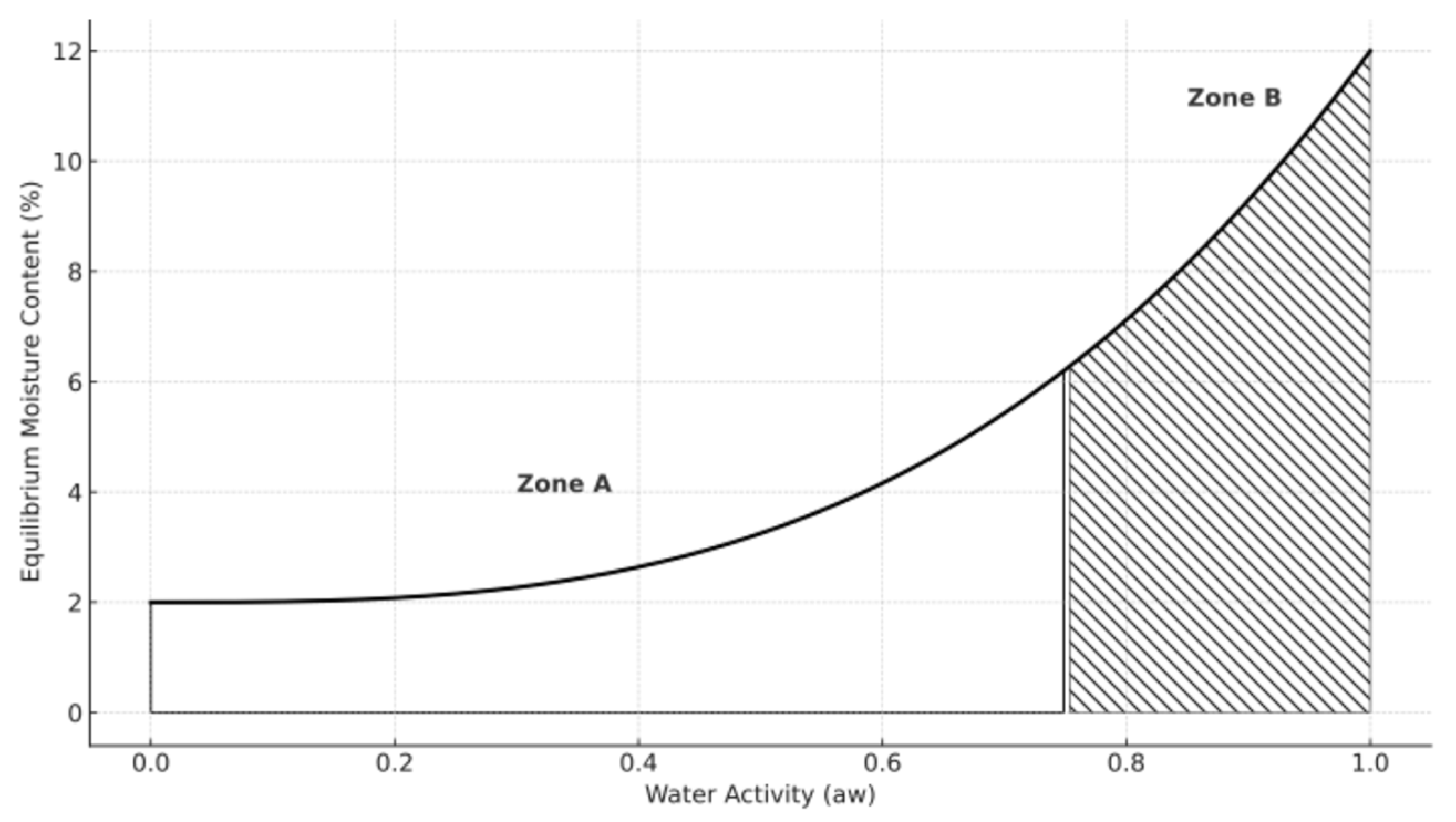 | Caking | Moisture uptake; Hygroscopic matrix; Structural collapse | Loss of flow, formation of lumps, poor rehydration |