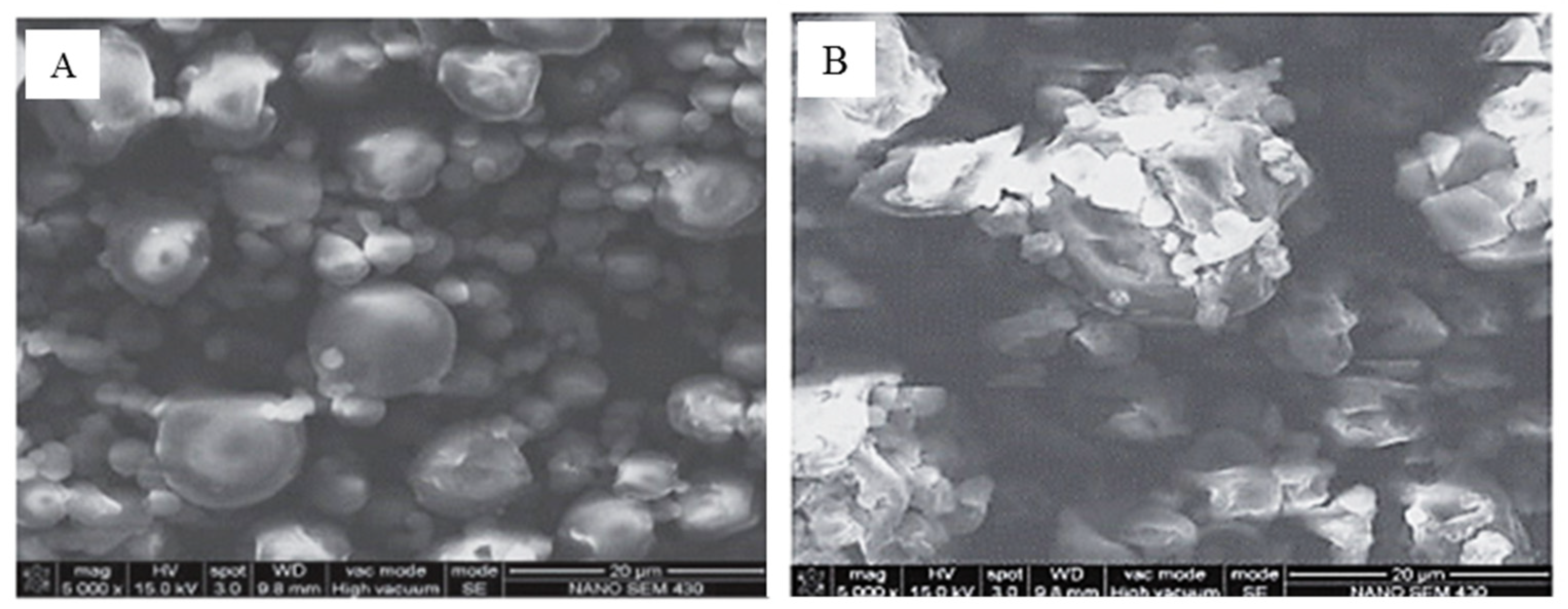 - Peng, Y.; Han, Y.; Gardner, D.J. Spray-drying cellulose nanofibrils: Effect of drying process parameters on particle morphology and size distribution. Wood Fiber Sci. 2012, 44, 448–461. [Google Scholar]