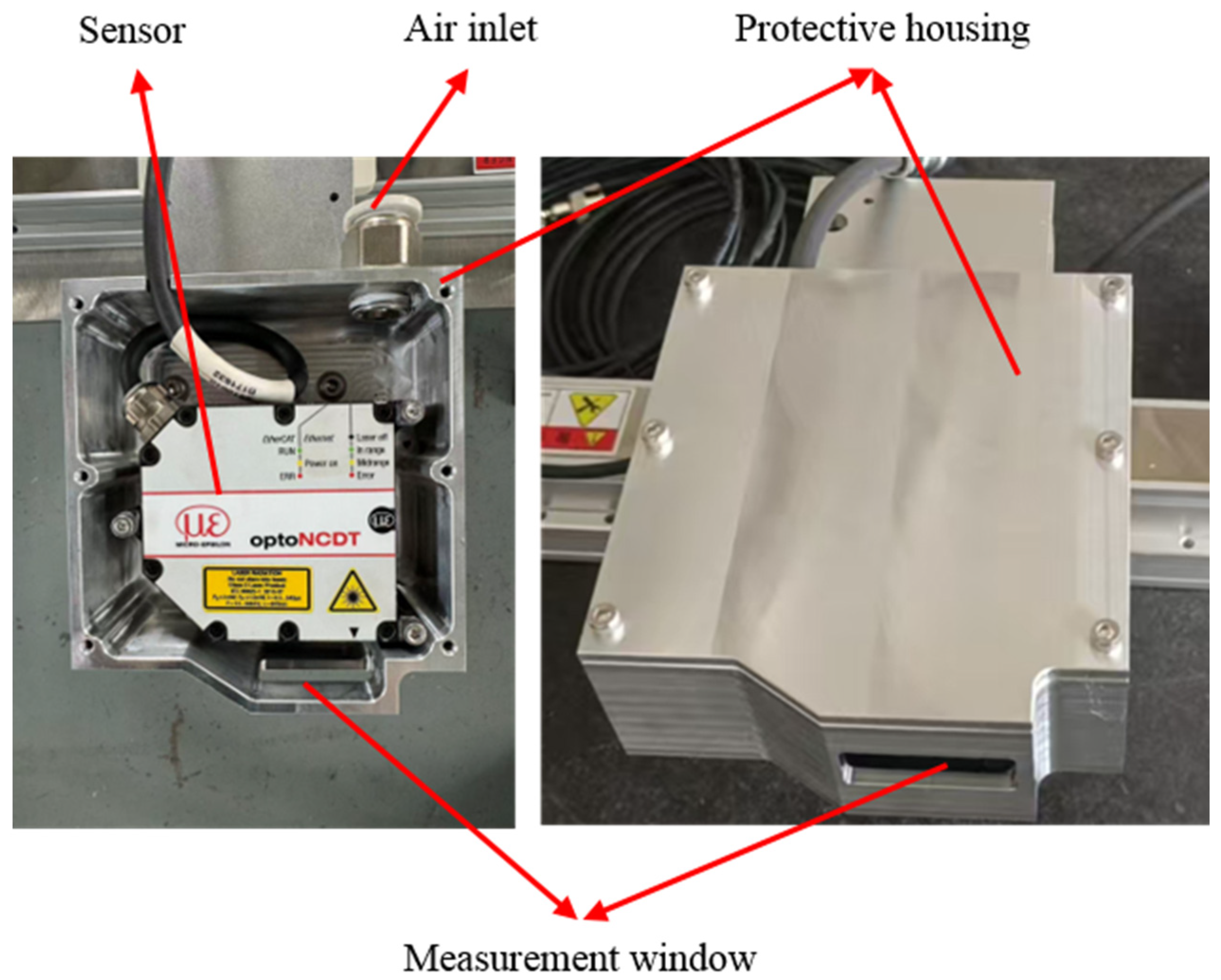To ensure the measurement accuracy of the laser displacement sensor under operational conditions, a protective housing for the sensor was designed, as shown in