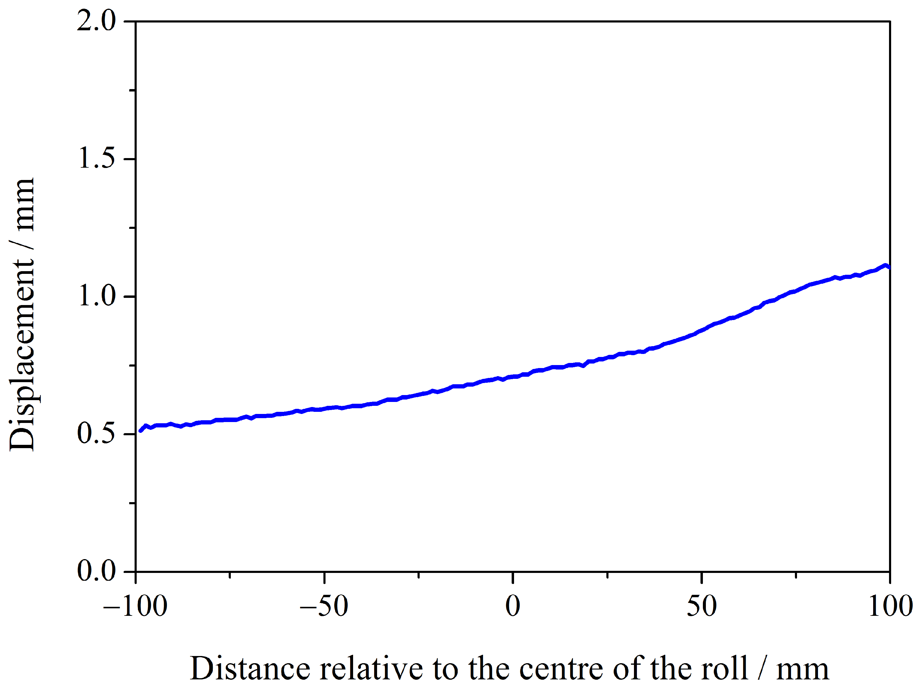 With the roll in a stationary state, adjusted the position of the online roll profile measurement device so that the incident light beam from the sensor passed through the roll’s axis. When the roll was positioned at 0°, 90°, 180° and 270°, the sensor measured the roll and performed averaging on the four sets of signals to obtain the static roll profile, as shown in