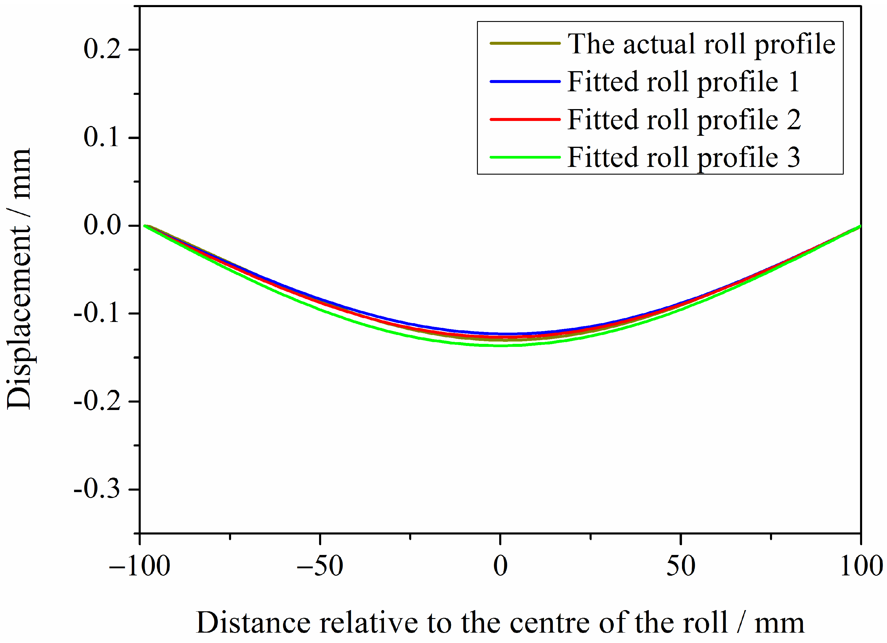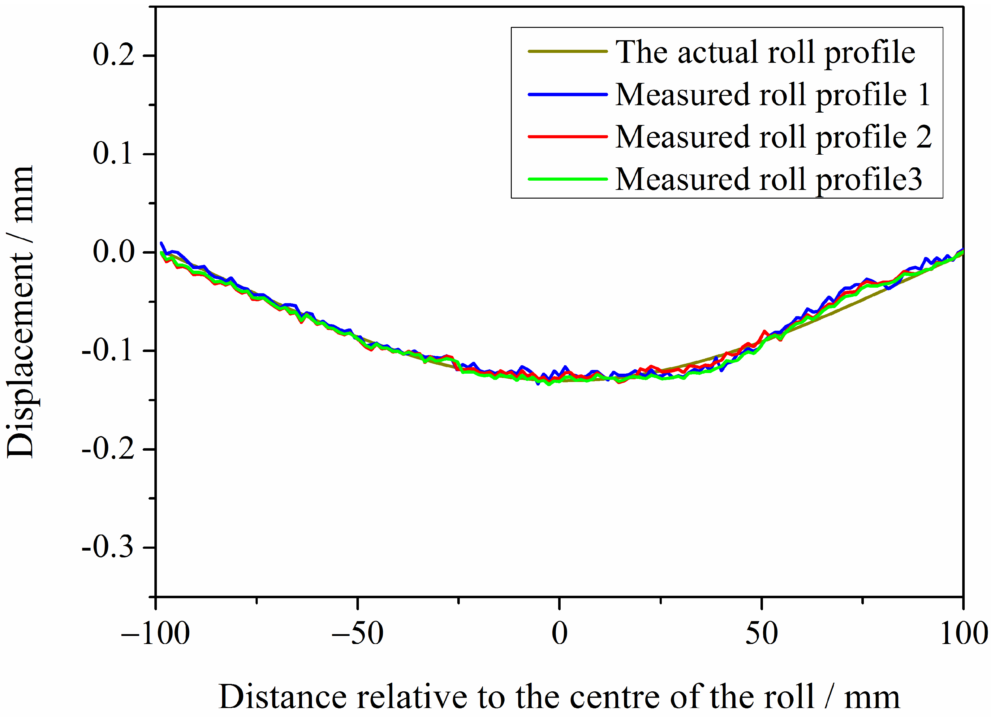 Three online roll profile measurement experiments were conducted during the no-load operation of the rolling mill. The measured roll profile curve under the no-load condition is shown in