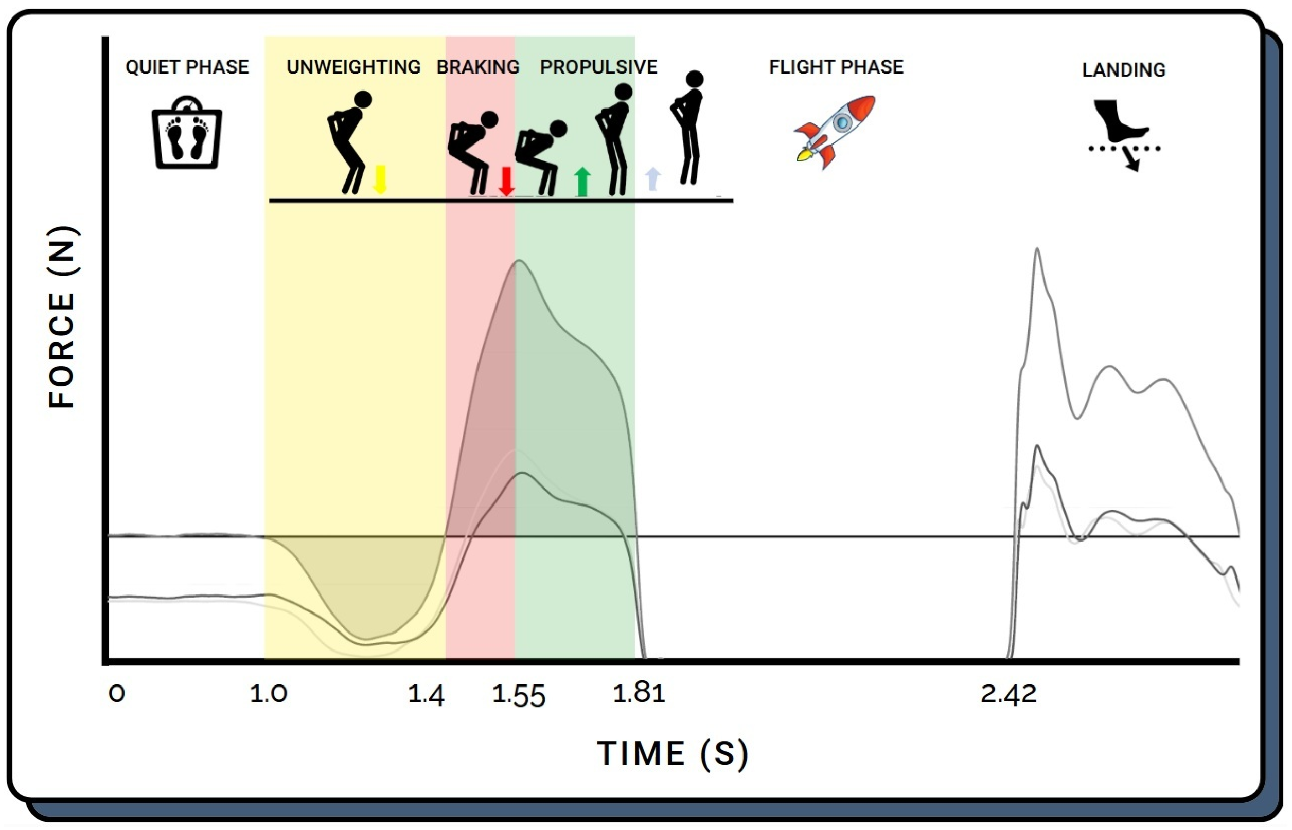 - Time to Take-off: Time from the beginning of movement to take-off; a shorter time with equal or greater jump height indicates faster force application.