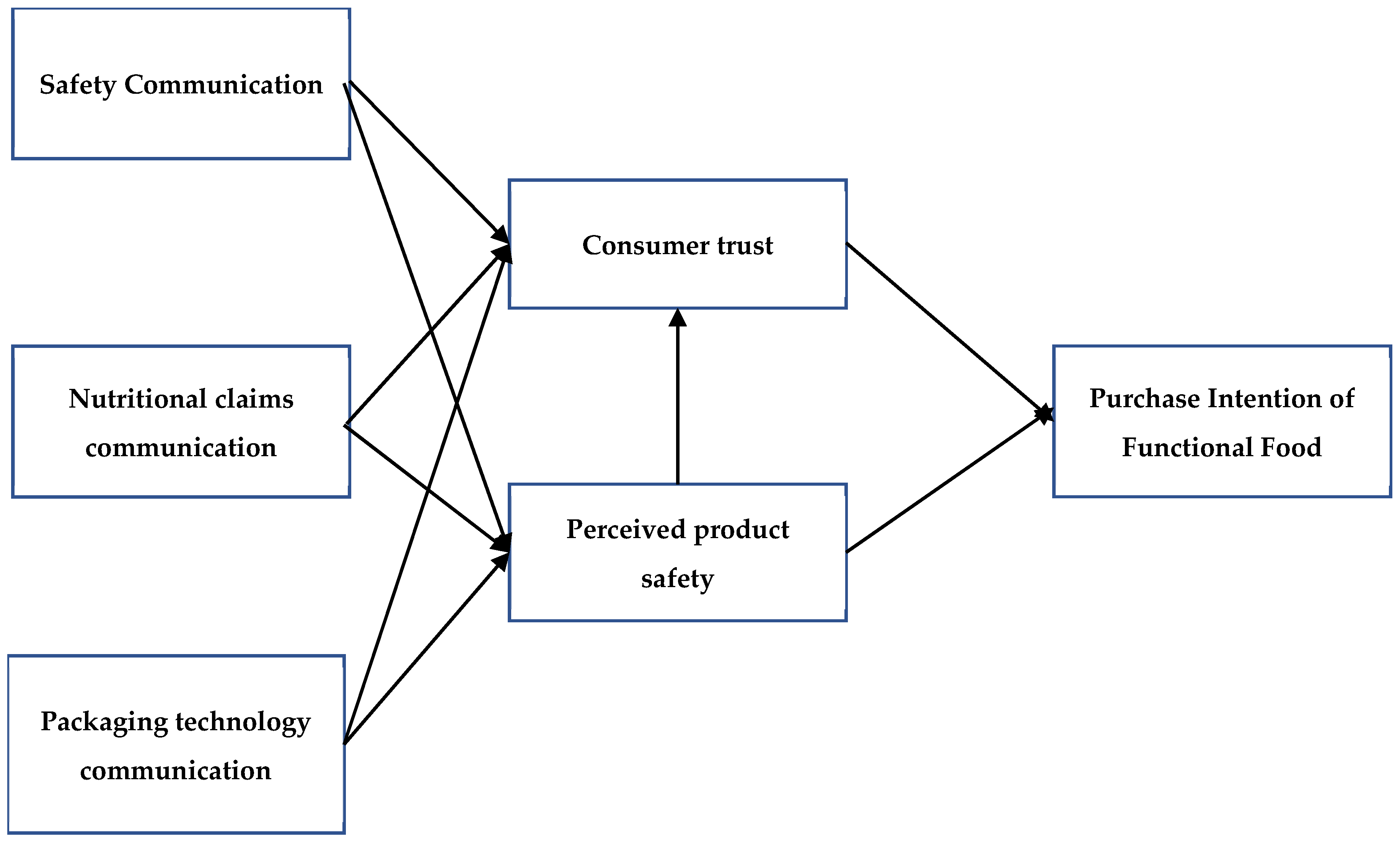 25]. In the case of functional foods in Pakistan where issues about adulteration remain, perceived safety will be the critical determinant of purchase intention, and thus an essential outcome of marketing communication strategies. Thus, it is theorized that perceived product safety is a positive and direct determinant of purchase intention of functional foods in Pakistan.