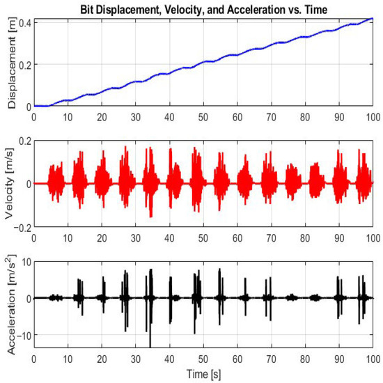 Several important observations arise from the case study. First, the open-loop scenario reveals inherent instability in the system, as the bit undergoes severe stick–slip oscillations and chaotic motion. Without any feedback control, these vibrations persist throughout the operation, making the drilling process both unsafe and inefficient. This result highlights the critical need for active vibration suppression strategies in rotary drilling systems.