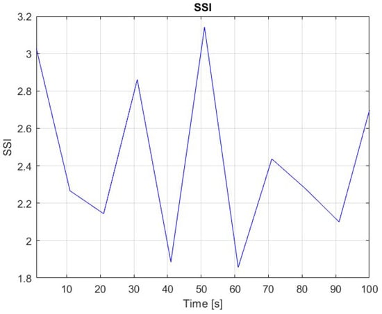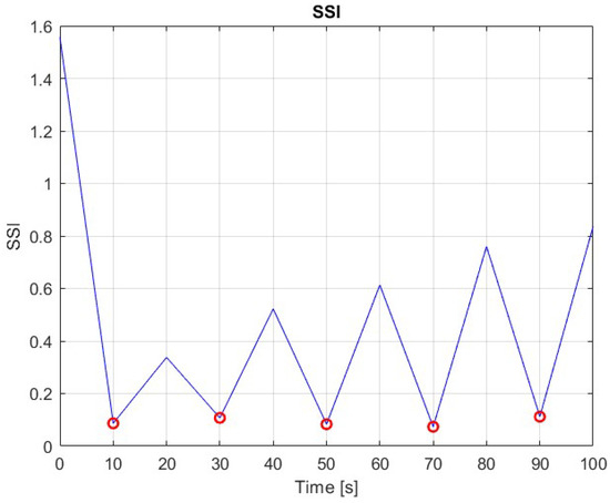 Figure 7, Figure 8 and Figure 9 compare the evolution of the SSI across the three control cases: open-loop (no feedback), SMC only, and the proposed MPC–SMC hybrid controller. The SSI serves as a quantitative metric to evaluate the severity of torsional vibrations at the drill bit. High SSI values indicate pronounced stick–slip oscillations, while lower values correspond to smoother and more stable rotational behavior.
