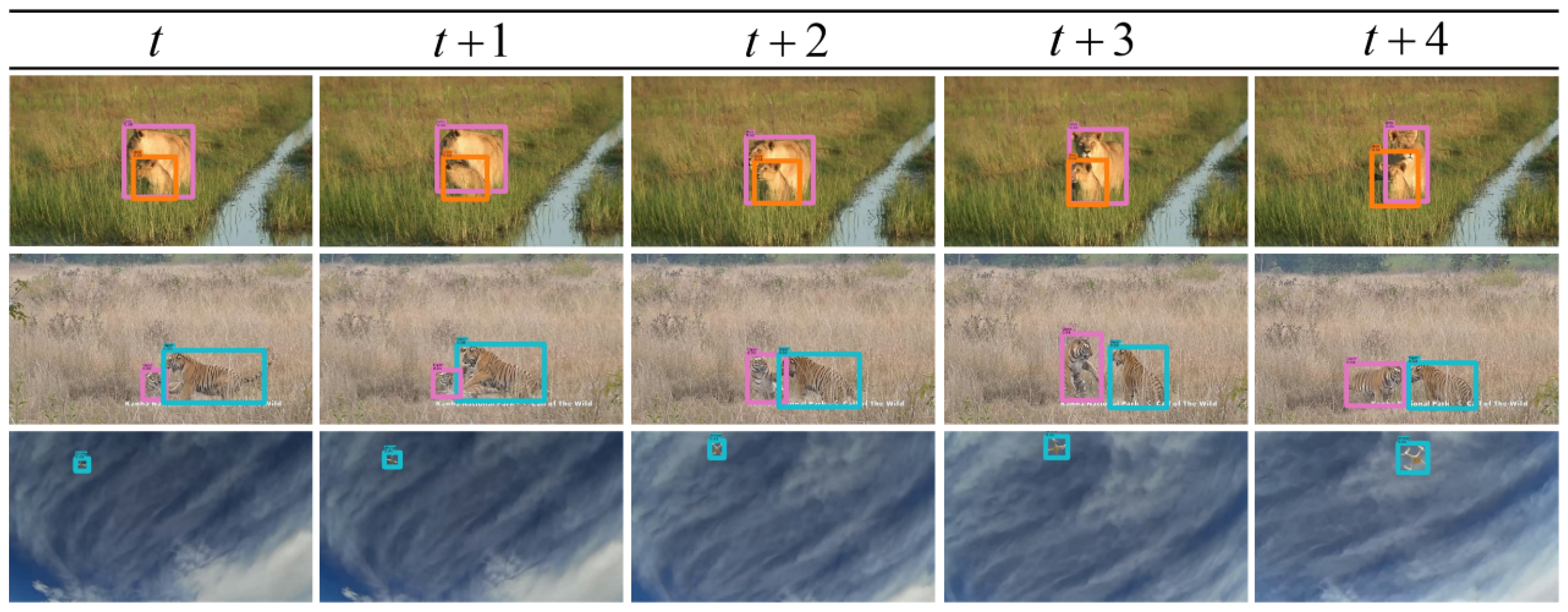 25]), target color changes are insignificant and displacement is small. However, in open-world scenarios, targets may undergo significant appearance changes due to their own motion, as shown in