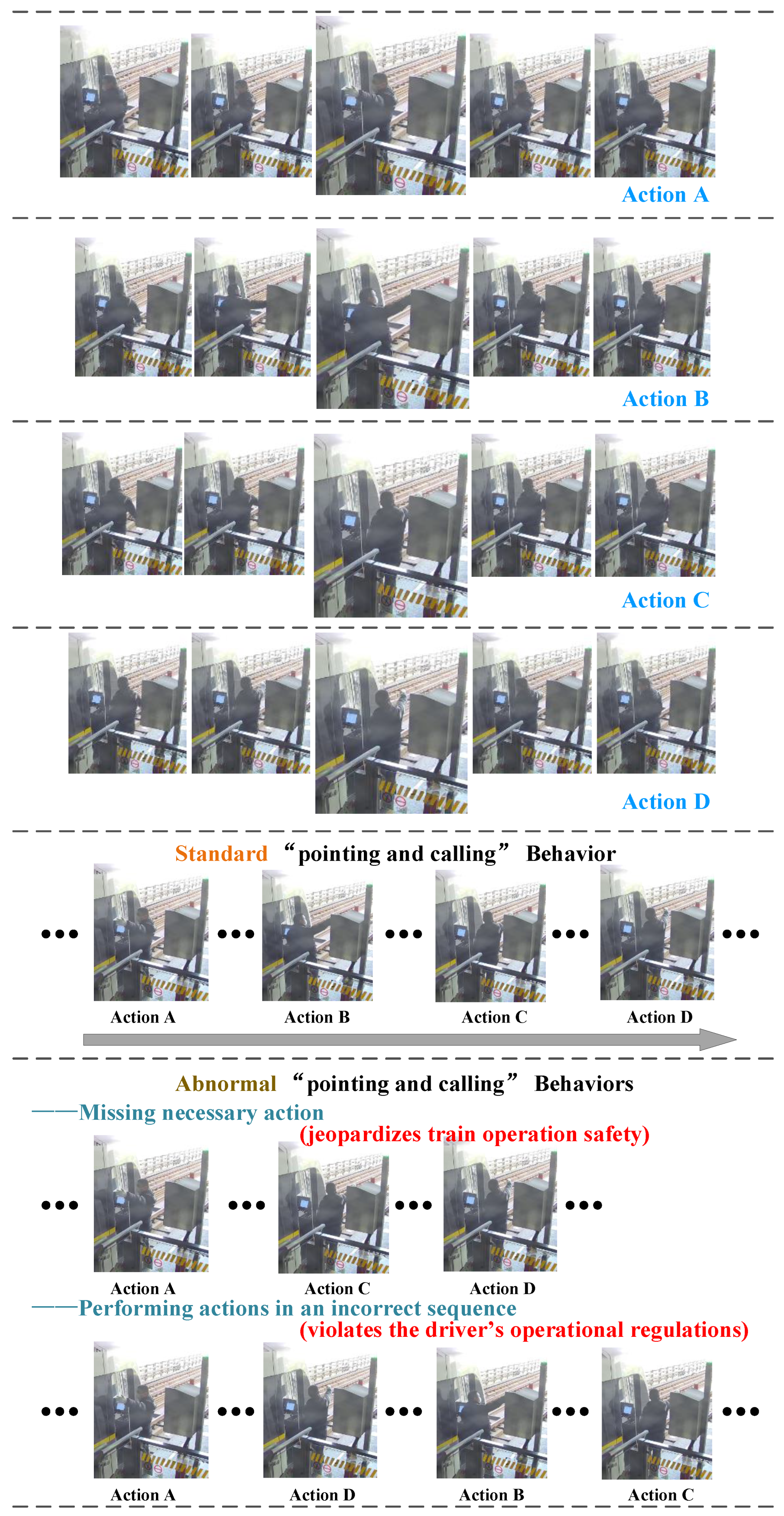 - A skeleton-based temporal action detection method is proposed for identifying abnormal behaviors of urban rail train drivers. The method utilizes 2D skeleton sequences and applies spatiotemporal graph convolution for feature extraction, thereby reducing model parameters and computational overhead while improving speed and equipment adaptability. Moreover, a tailored skeleton topology, designed according to the characteristics of driver actions, enhances the model’s ability to discriminate similar actions in 2D skeleton data.