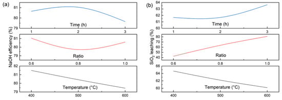 Factor analysis of NaOH efficiency (a) and SiO2 leaching (b).