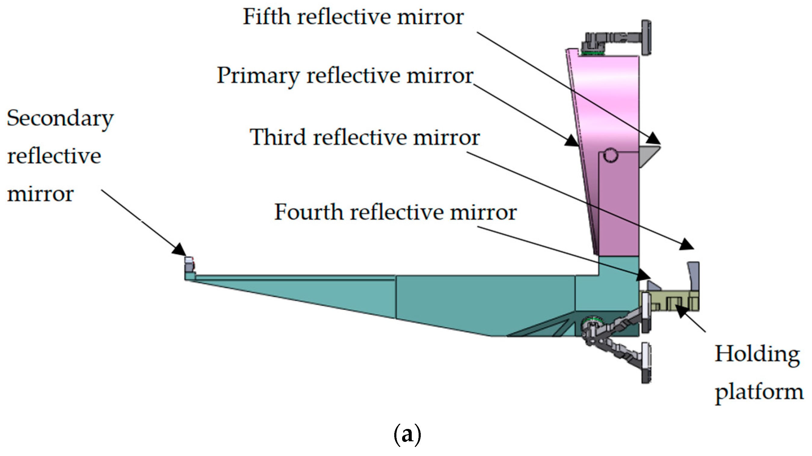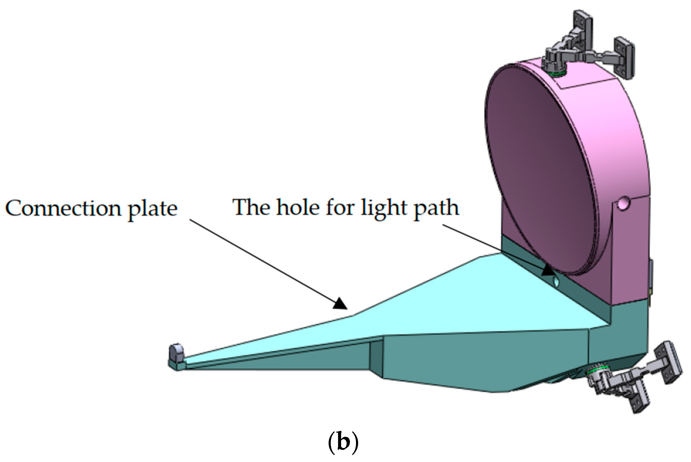 - Cao, S.Y. Structural Design of Spaceborne Laser Emitting Telescope Based on Gravitational Wave Detection. Master’s Thesis, Huazhong University of Science and Technology, Wuhan, China, 2023. [Google Scholar]