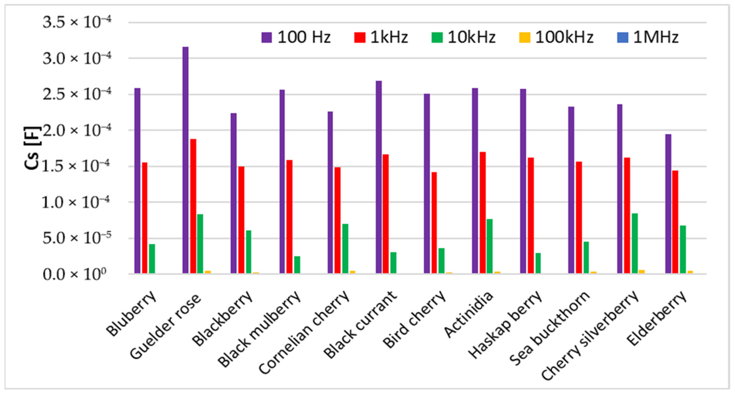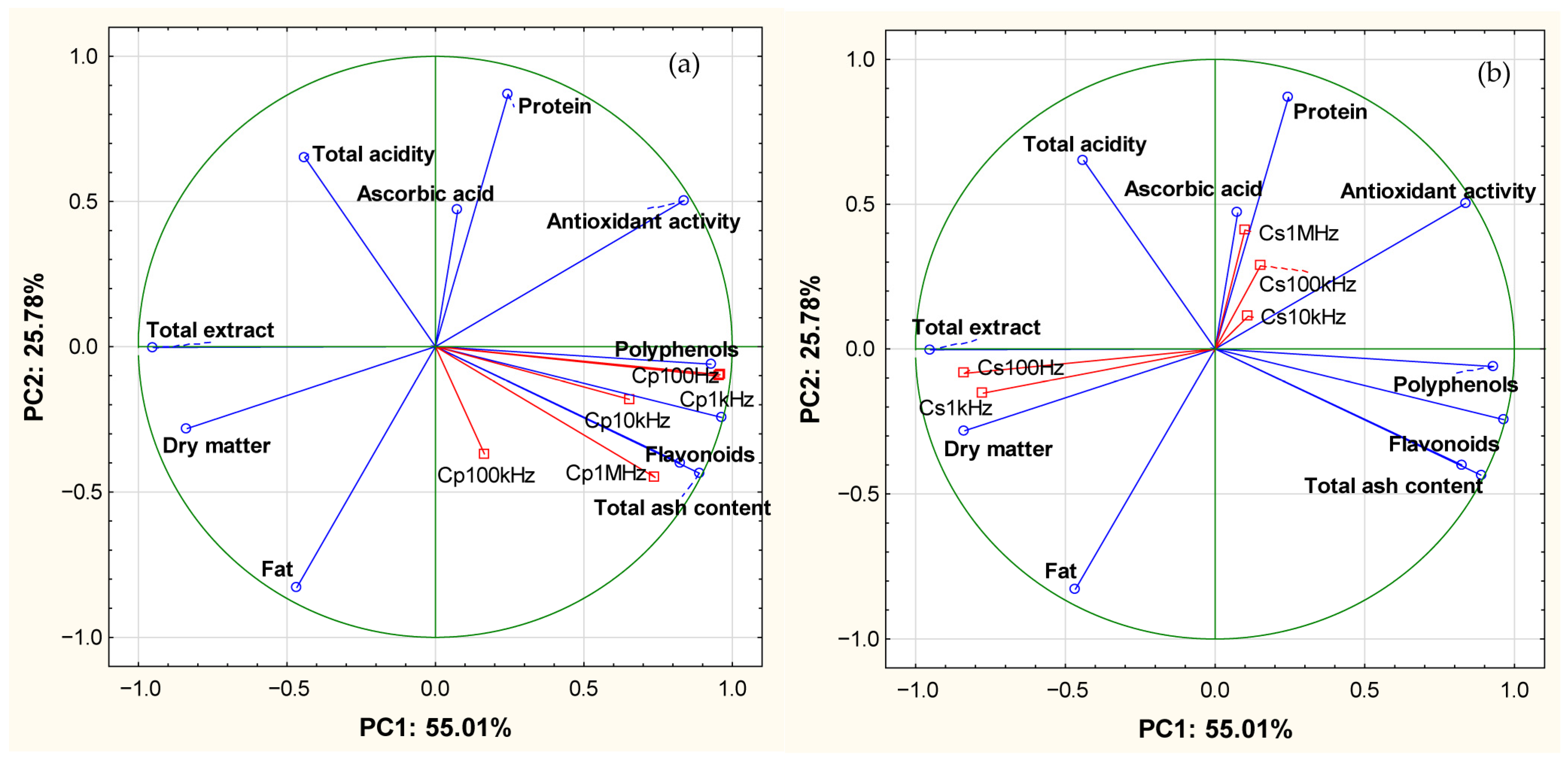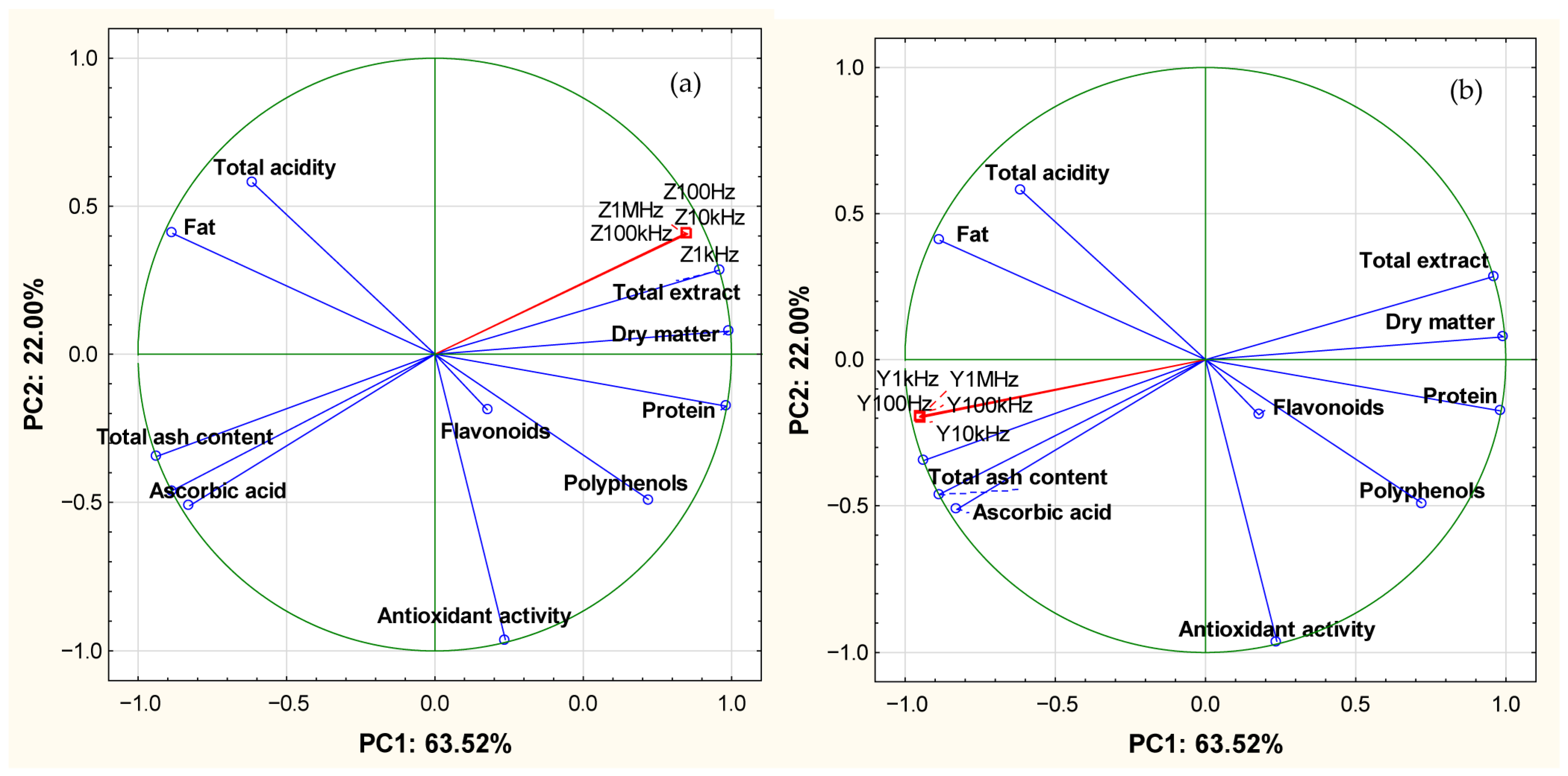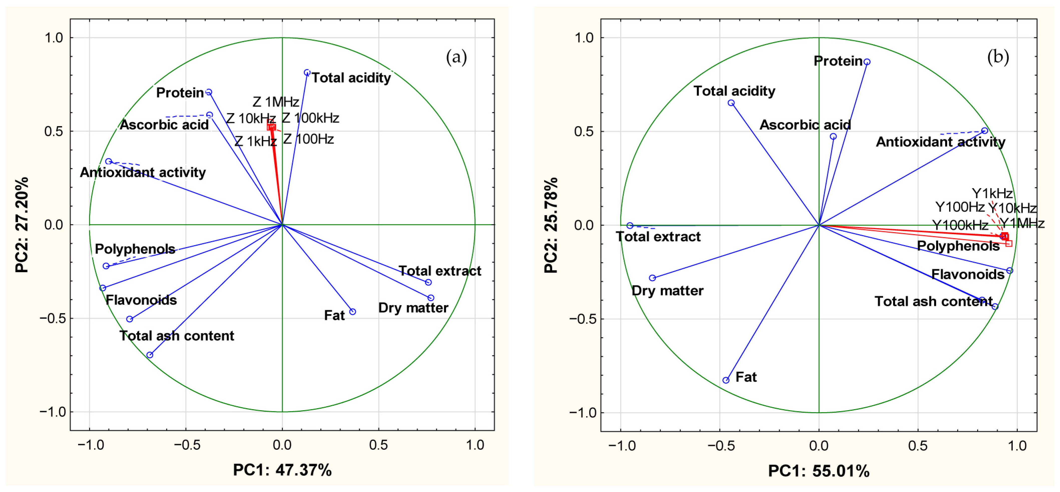 Banach, J.K.; Bojarska, J.E.; Ivanišová, E.; Harangozo, Ľ.; Kačániová, M.; Grzywińska-Rąpca, M.; Bieniek, A. Electrical Parameters as a Tool for Evaluating the Quality and Functional Properties of Superfruit Purees. Appl. Sci. 2025, 15, 13180. https://doi.org/10.3390/app152413180