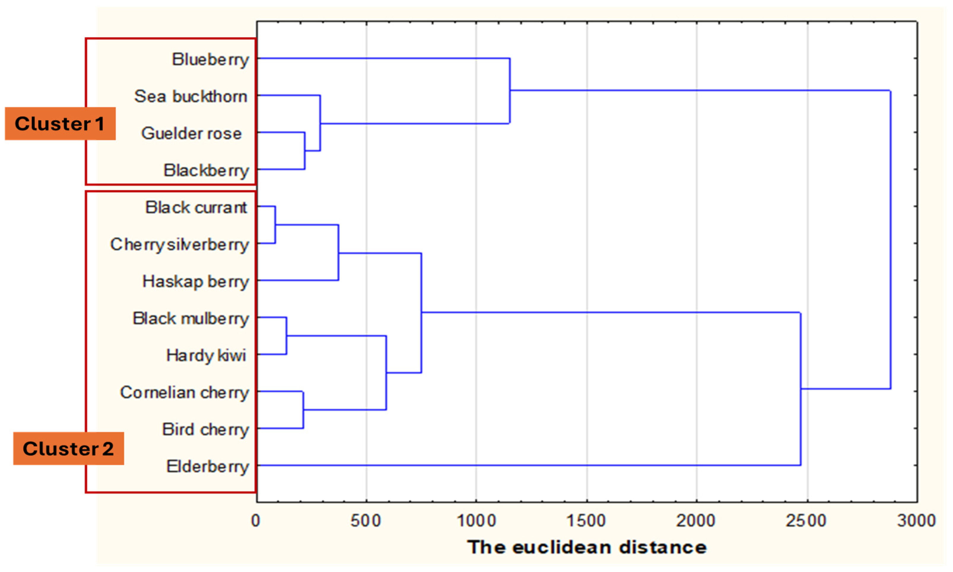 | Hardy kiwi | 18.905 g | 1.125 a | 0.851 c | 15.25 g | 1.527 d | 0.478 ac | 15.598 a | 14.968 d | 24.852 d | 11.397 a |