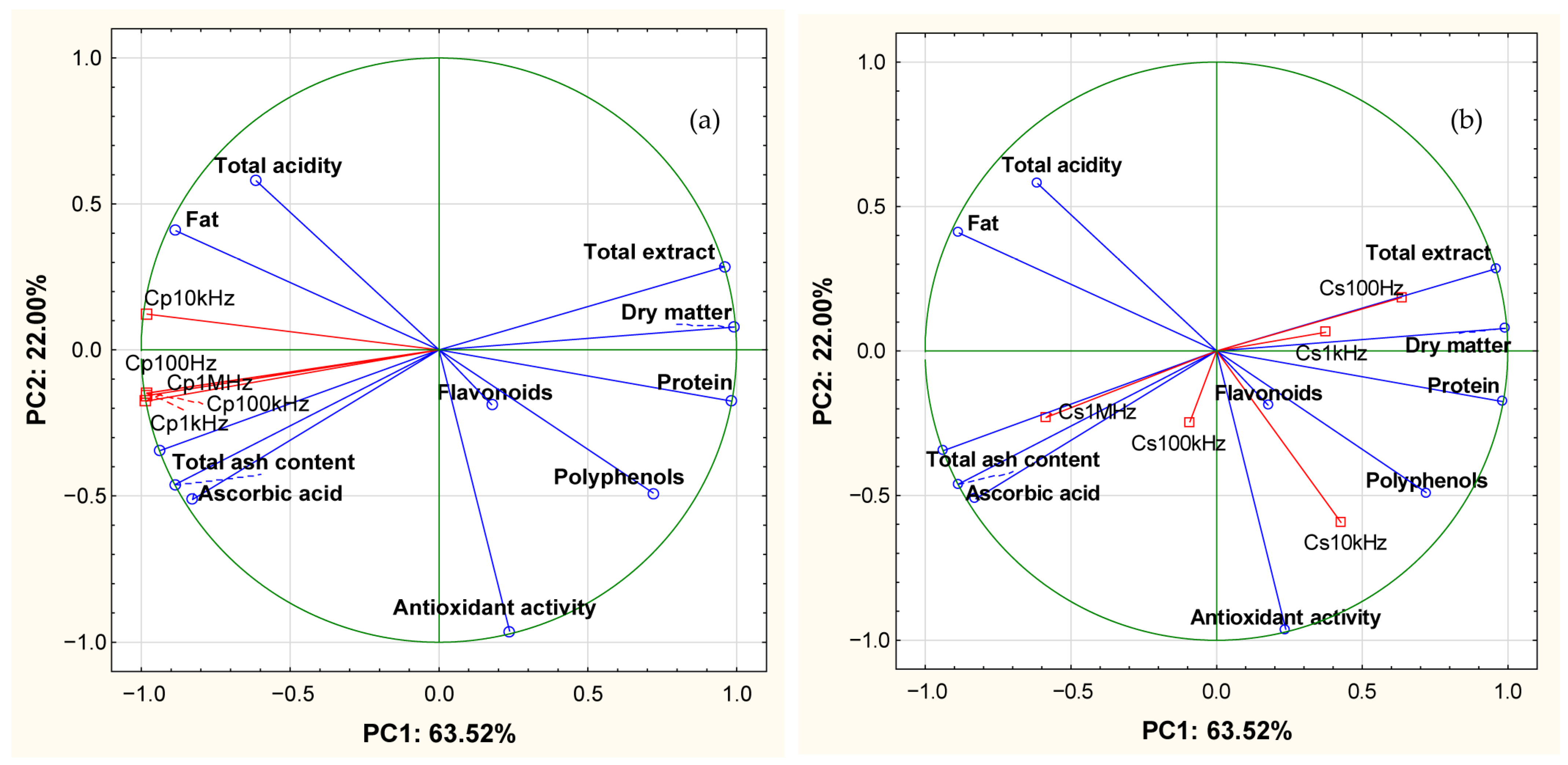 Chicago/Turabian StyleBanach, Joanna Katarzyna, Justyna E. Bojarska, Eva Ivanišová, Ľuboš Harangozo, Miroslava Kačániová, Małgorzata Grzywińska-Rąpca, and Anna Bieniek. 2025. "Electrical Parameters as a Tool for Evaluating the Quality and Functional Properties of Superfruit Purees" Applied Sciences 15, no. 24: 13180. https://doi.org/10.3390/app152413180