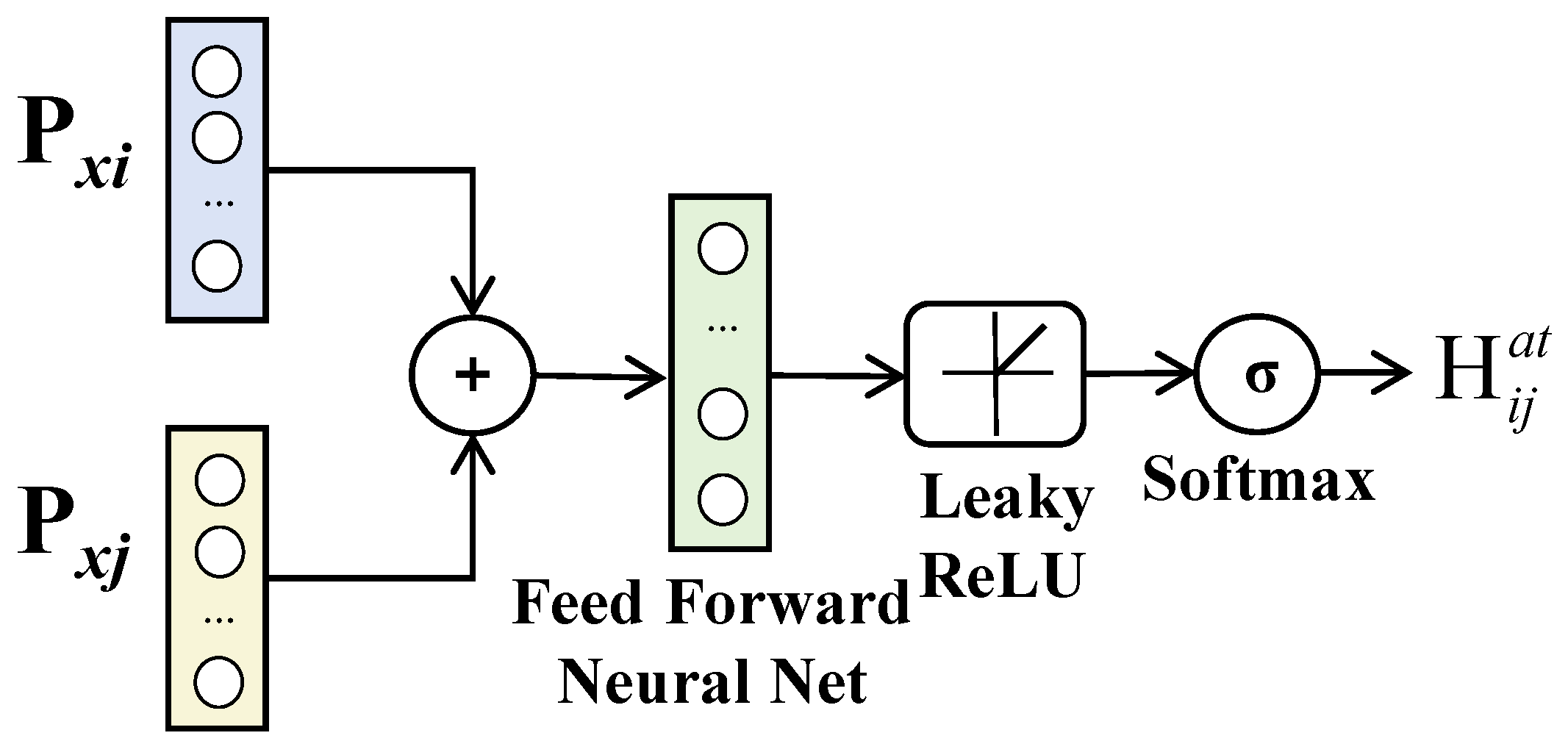 Scoreij = LeakyReLU(T[Pxi⊕Pxj]) # Equation (13)