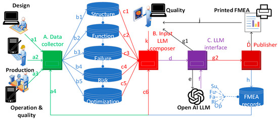 - Design and Development—marked as a1 in Figure 5. LLM FMEA solution block diagram.