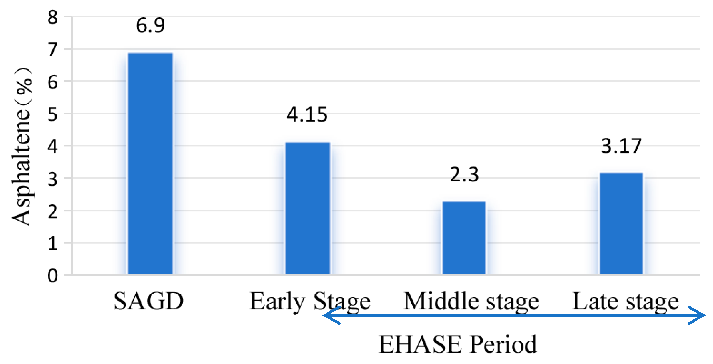 Comparison of asphaltene content in produced oil during SAGD and solvent extraction stages.
