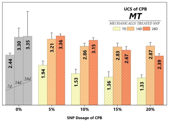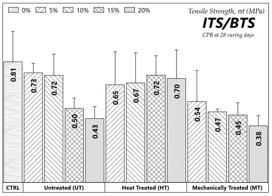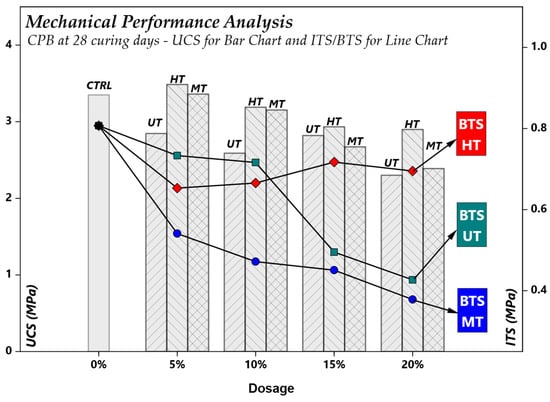 - Elastic modulus (E) at 28 curing days indicated that MT (5%) and HT (5%) were stiffer than UT and CTRL CPB.