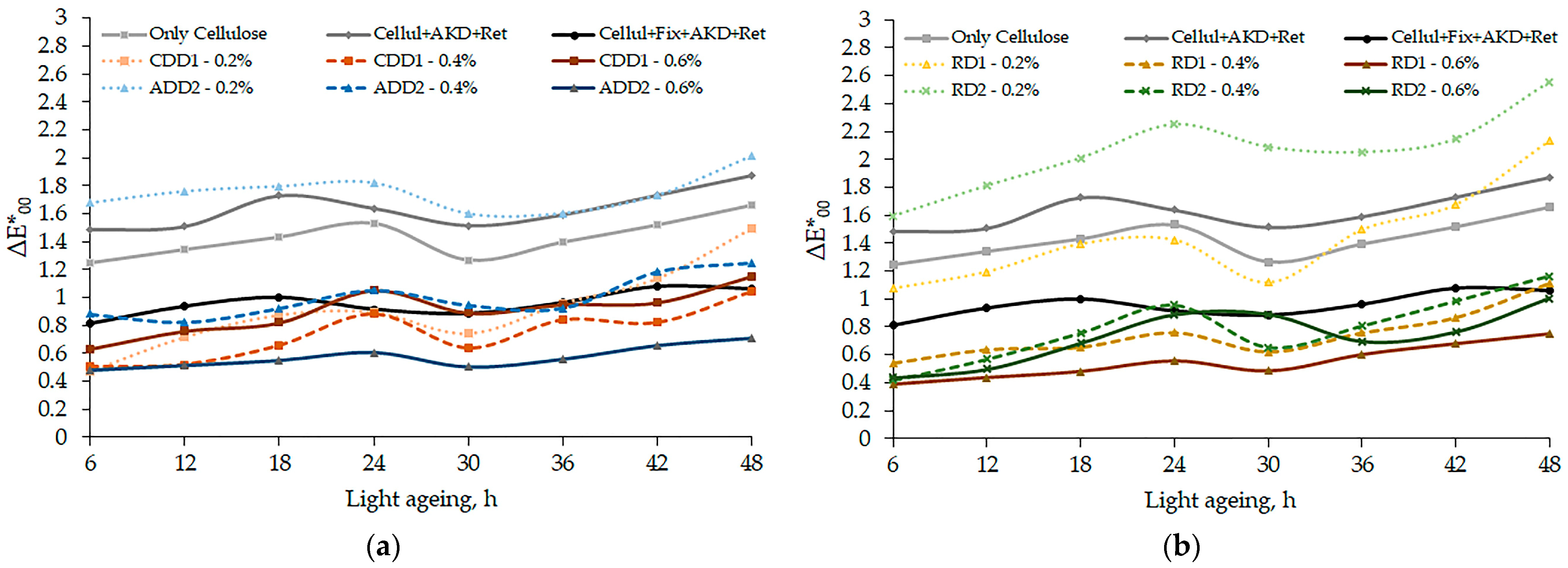 - ISO 5630-7:2014; Paper and Board—Accelerated Ageing—Part 7: Exposure to Light. International Organization for Standardization (ISO): Geneva, Switzerland, 2014.