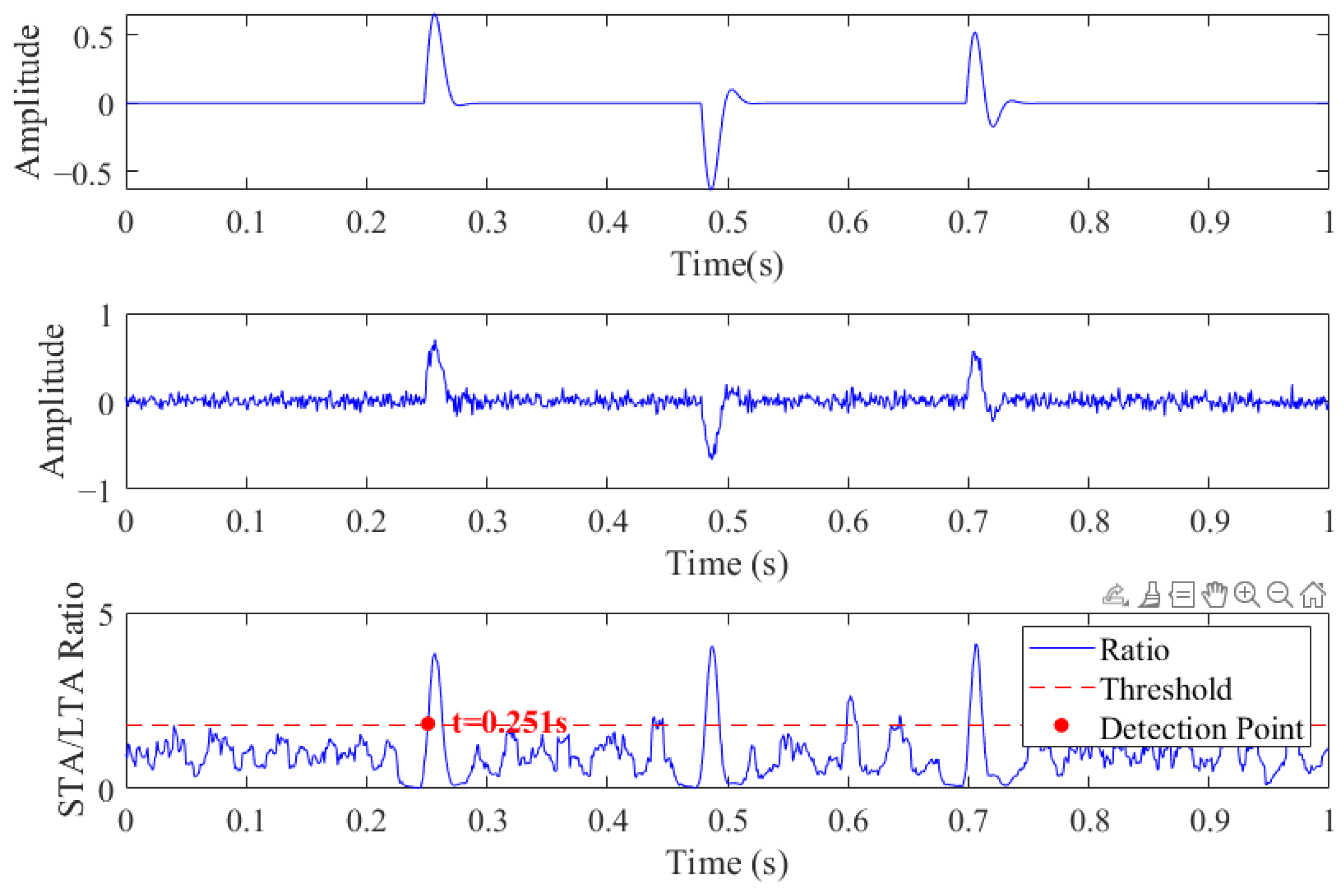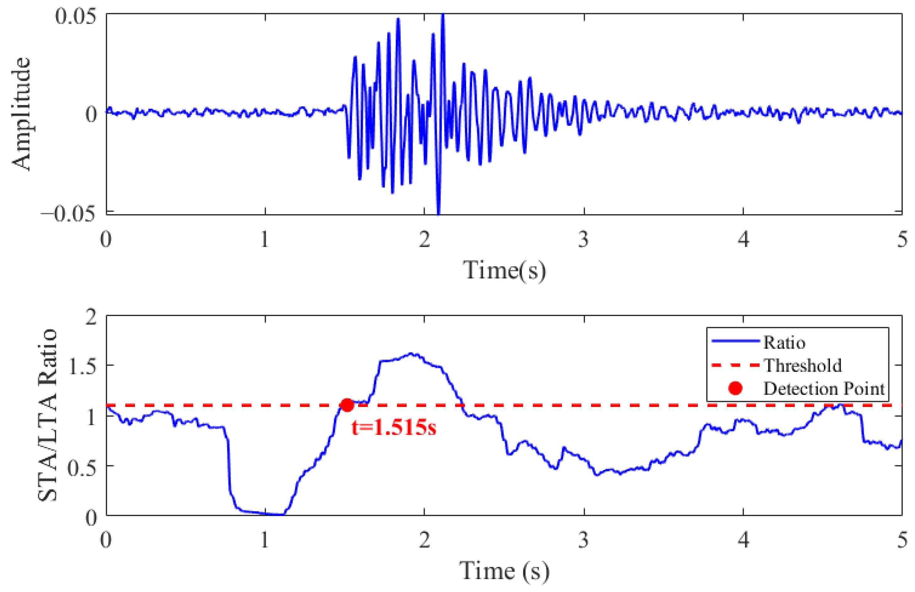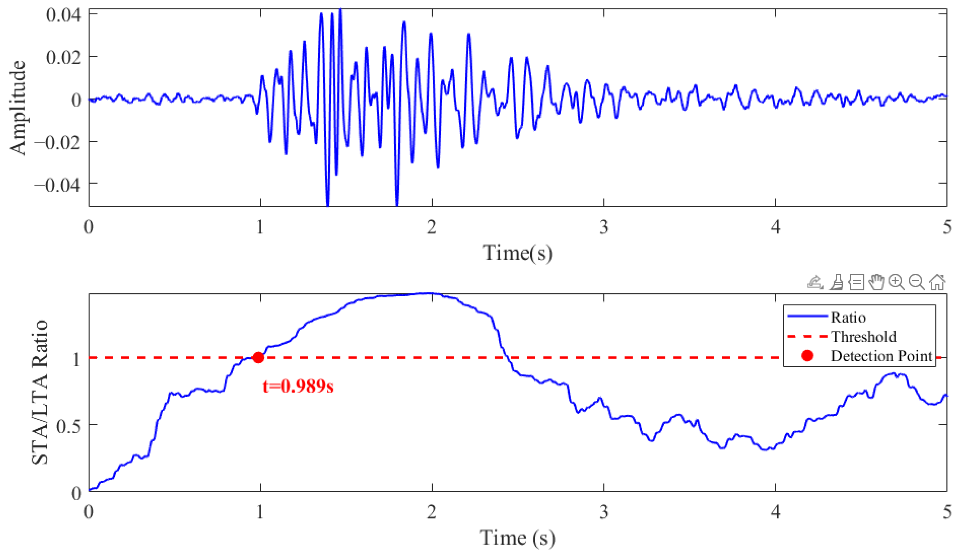 - We calculate the ratio of STA to LTA and manually set a threshold, , to determine whether a microseismic event has occurred.