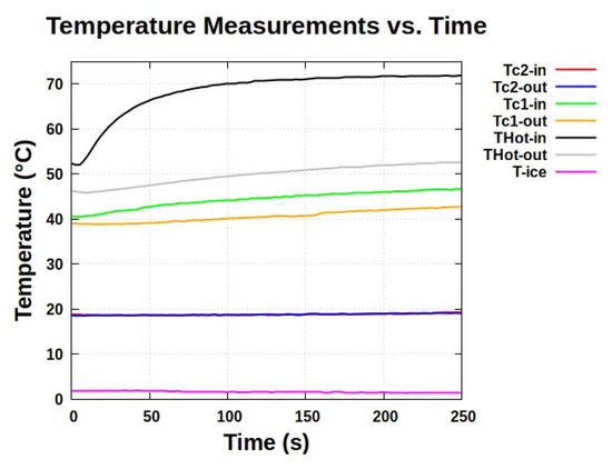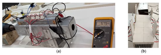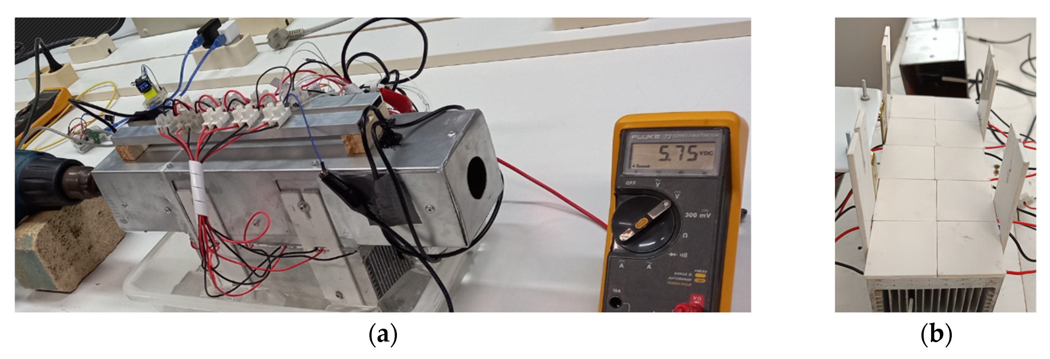 Figure 7b). The upper heat sink is in direct contact with the heat flow, while the lower heat sink is immersed in a container with ice, whose temperature