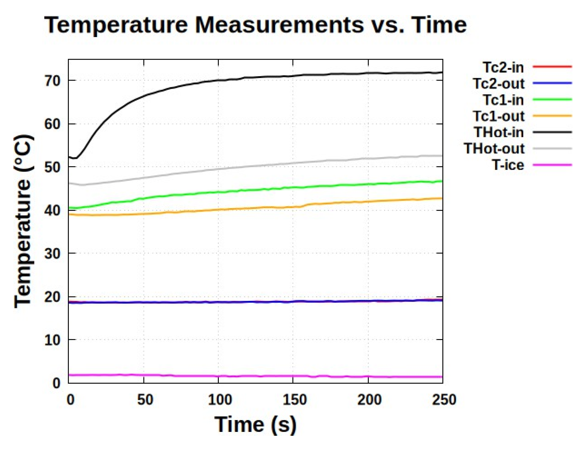 To monitor the thermal profile, four thermocouples are used in contact with the ceramics of the cells: