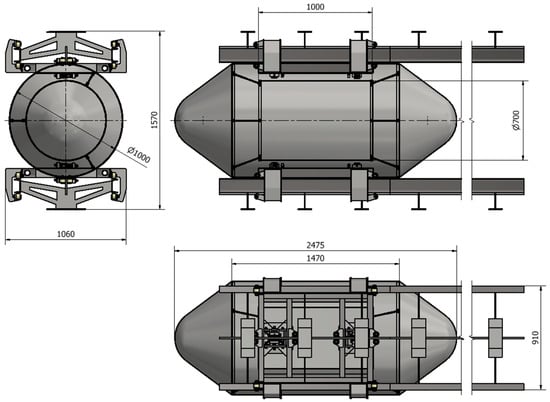 The complete drop capsule’s assembly, with its main dimensions, is presented in Figure 4.