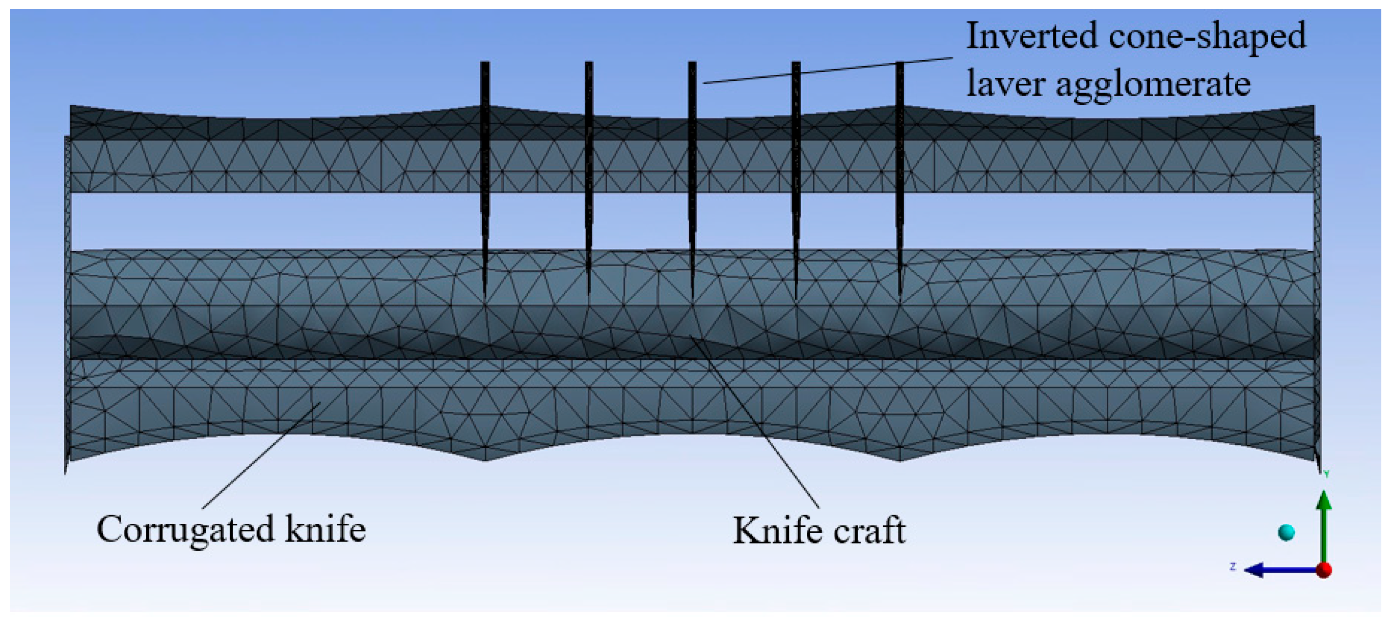 25]. In order to form a more effective shear effect and to cut more laver instead of pulling it apart, the model of laver was subjected to the