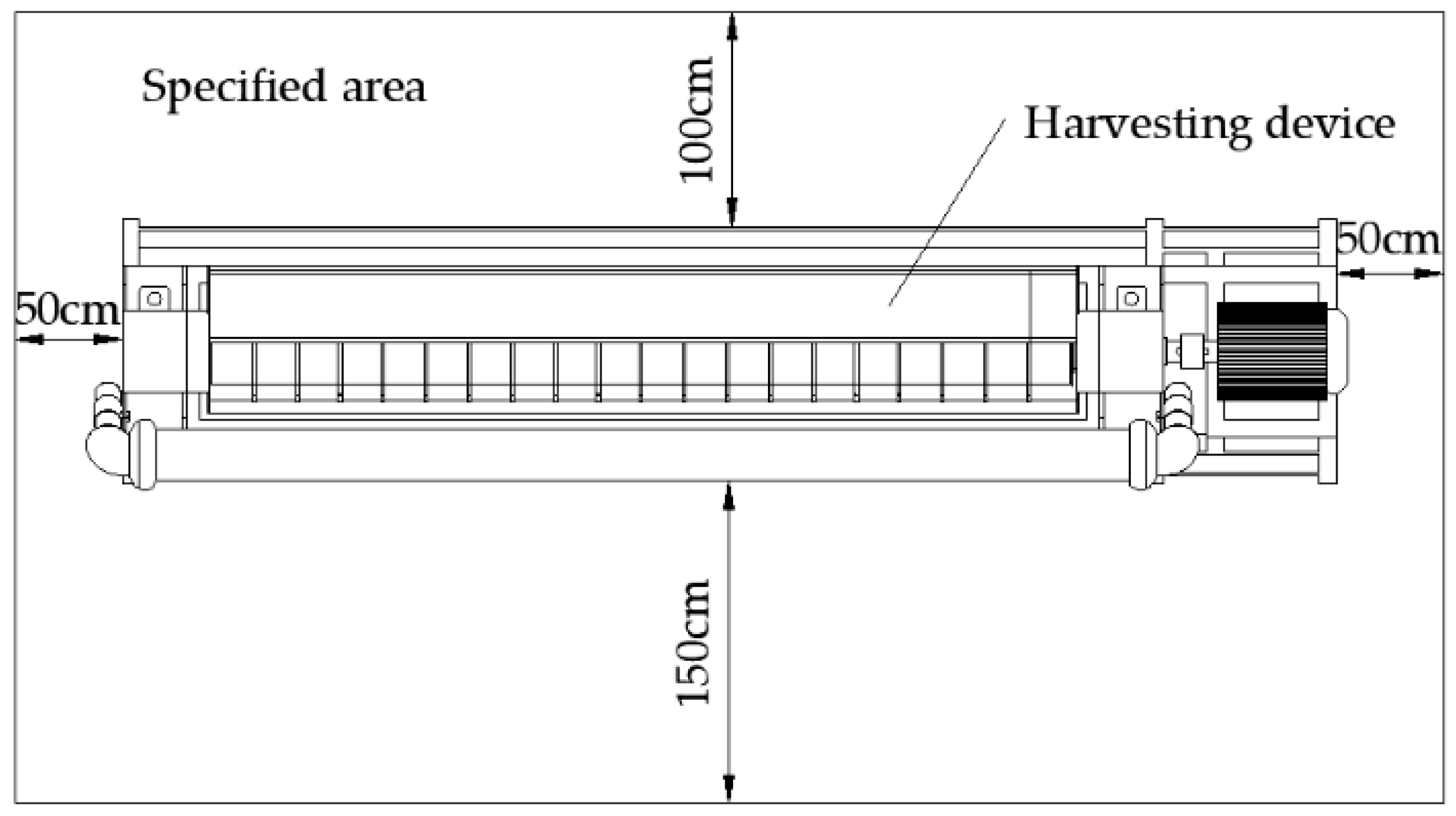 27], the net harvesting rate of the straight blade is 89% at a speed of 800 rpm, which is significantly lower than that of the corrugated blade. This indicates that the corrugated blade harvesting equipment is more capable of harvesting laver at a low rotational speed, which can reduce the splash of laver and energy loss. So, corrugated blade harvesting equipment can use appropriately reduced rotational speeds to harvest laver, meaning it can reduce the splash loss of laver without affecting the net recovery rate. As shown in