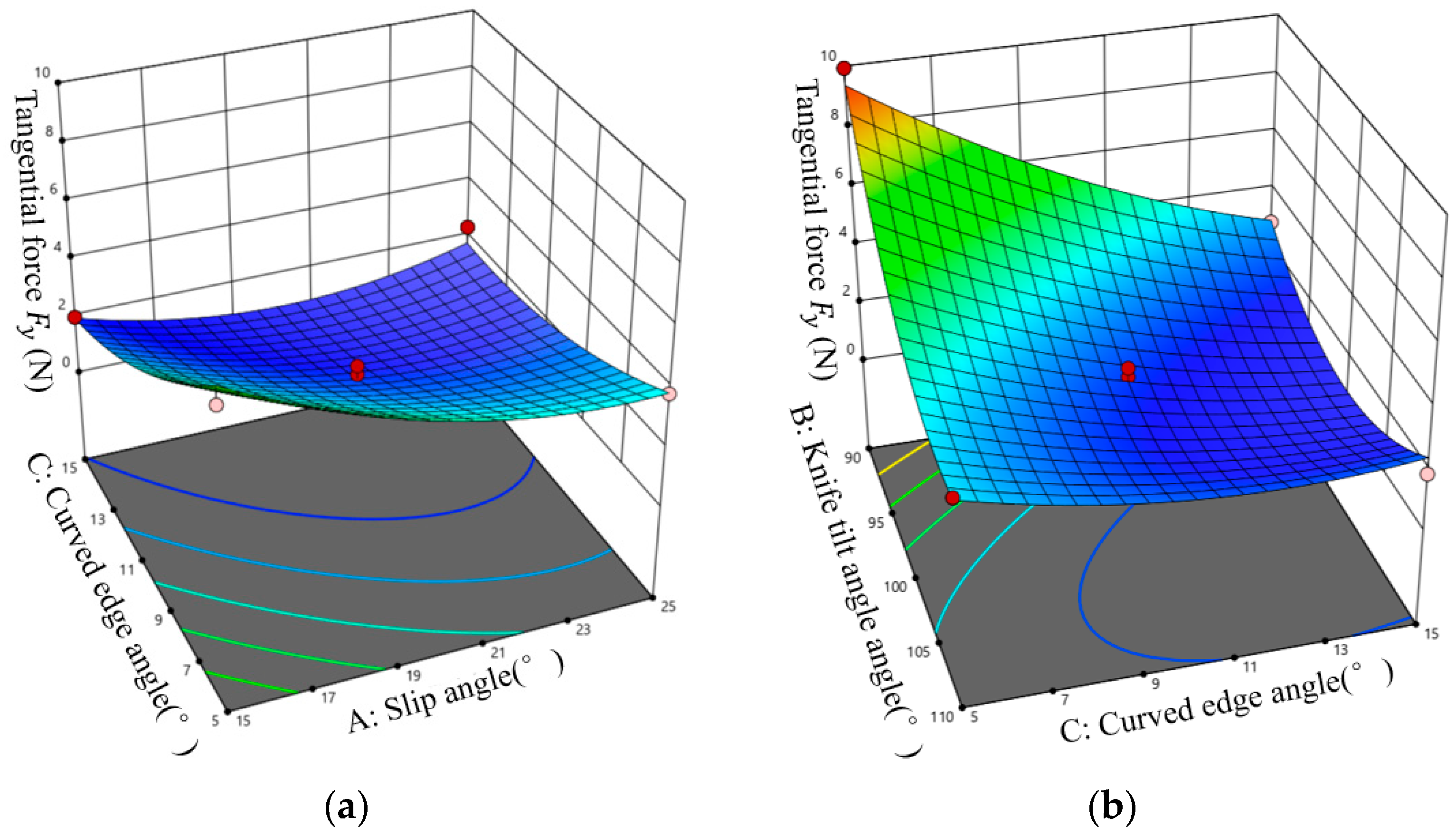 Figure A9 for details). The order of influence of each factor on Fywas determined as follows: curved edge angle (C) > tool inclination (B) > slip angle (A).